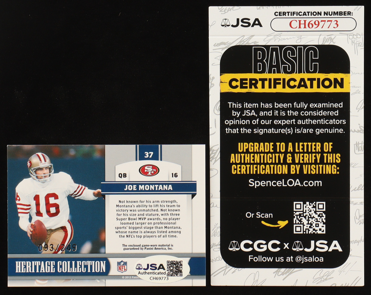 Joe Montana Signed 2011 Totally Certified Heritage Collection Jerseys #37 #093/249 (JSA)
