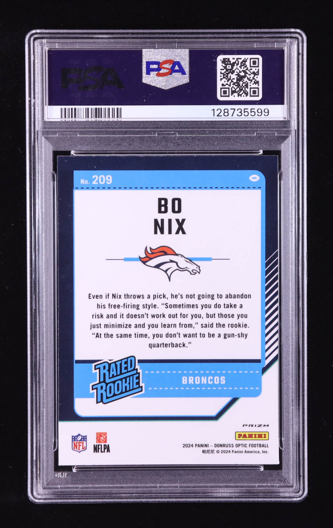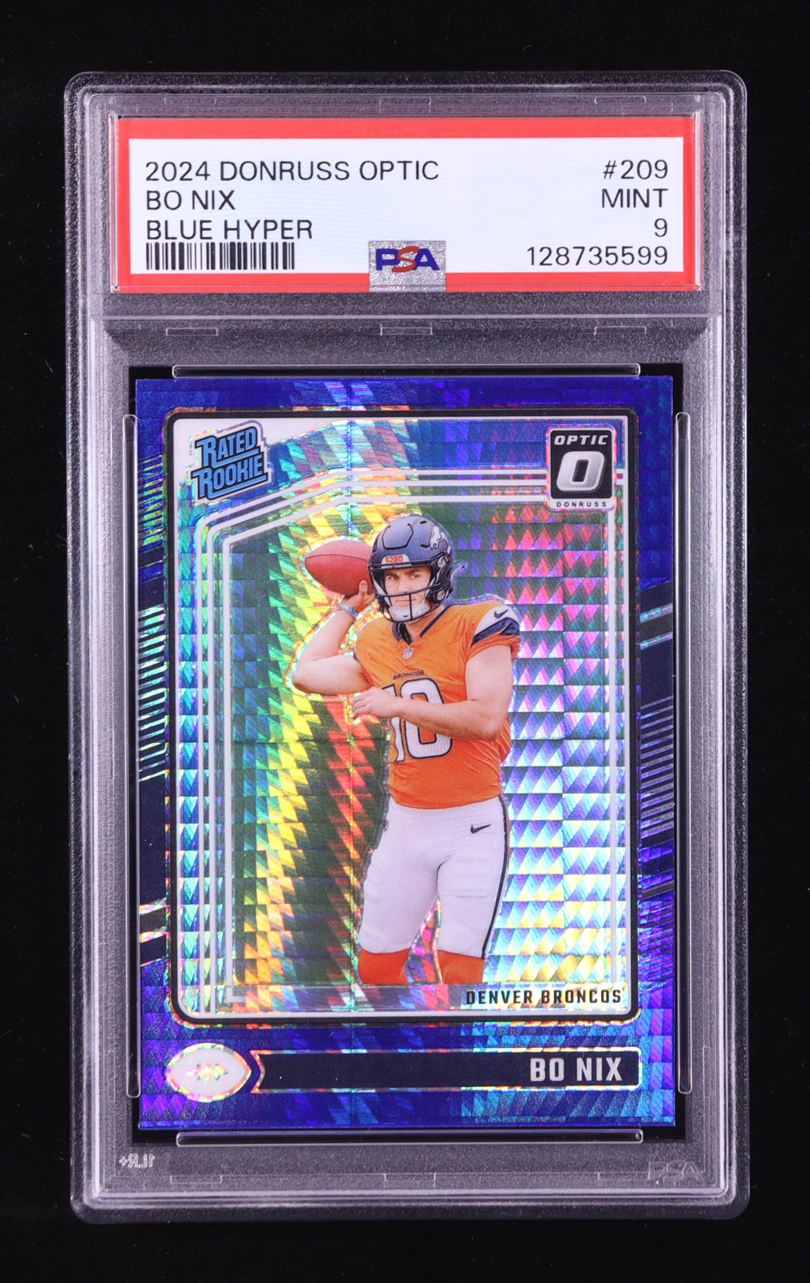 Bo Nix 2024 Donruss Optic Blue Hyper #209 RR RC (PSA 9)
