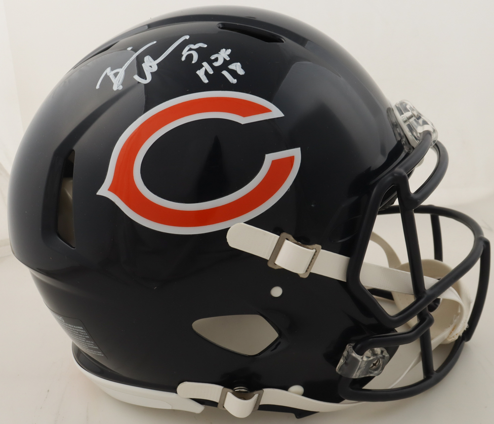 Riddell Chicago Bears full-size authentic on-field speed helmet has been hand-signed and inscribed by Brian Urlacher (HOF).