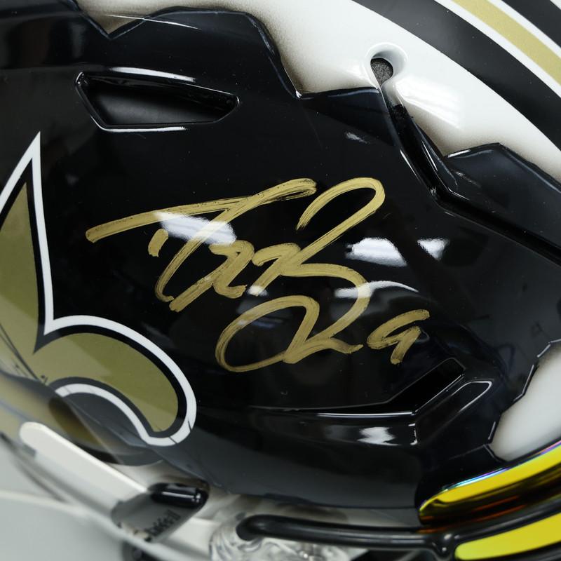Riddell New Orleans Saints / Purdue Boilermakers full-size authentic on-field custom painted speedflex helmet has been hand-signed by Drew Brees.