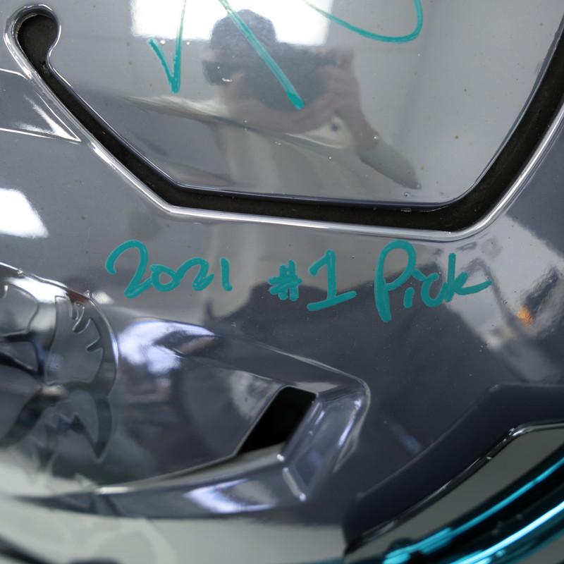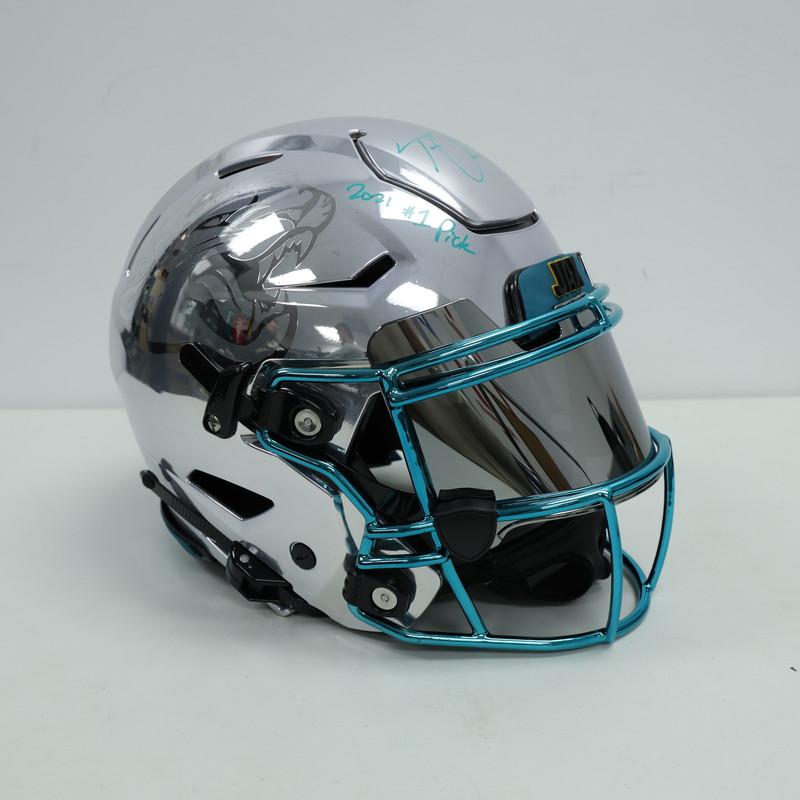 Trevor Lawrence Signed Jaguars Full-Size Authentic On-Field Custom Chrome Alternate Speedflex Helmet Inscribed "2021 #1 Pick" (Beckett)