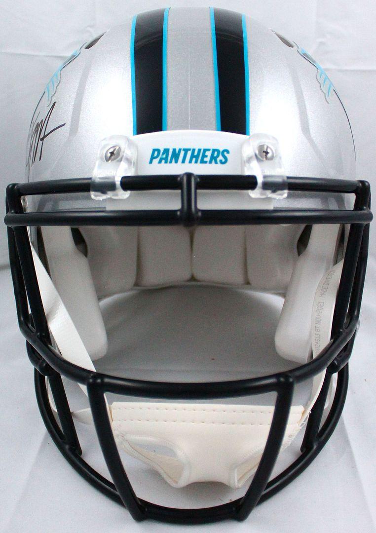 Riddell Carolina Panthers full-size replica authentic on-field Speed helmet. Hand-signed by D. J. Moore.