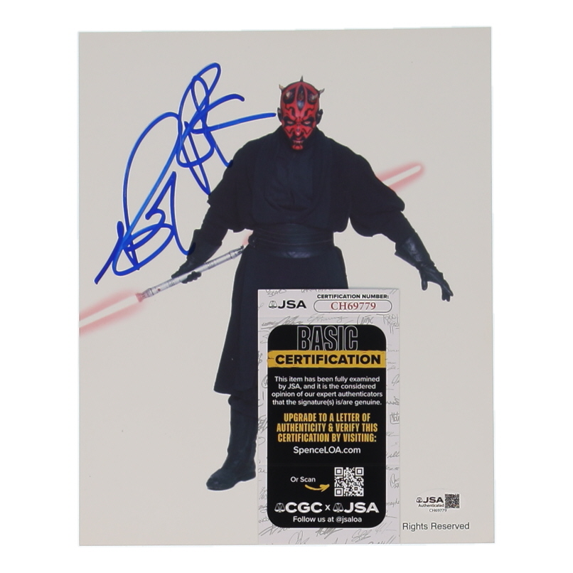 Photo measures 8" x 10" in size and has been hand-signed by Ray Park (Darth Maul).