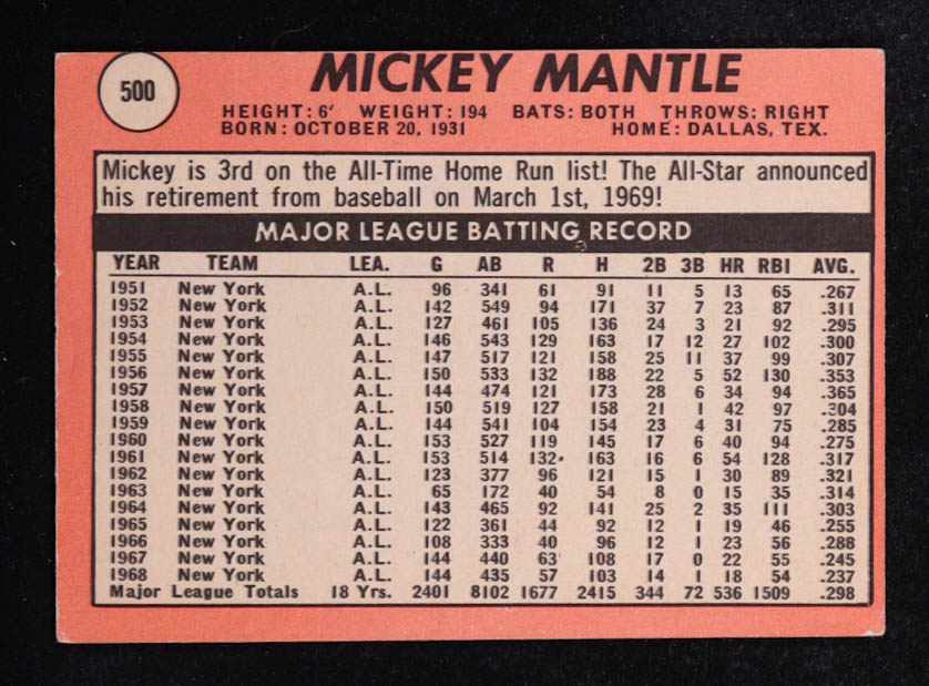 Mickey Mantle 1969 Topps #500A