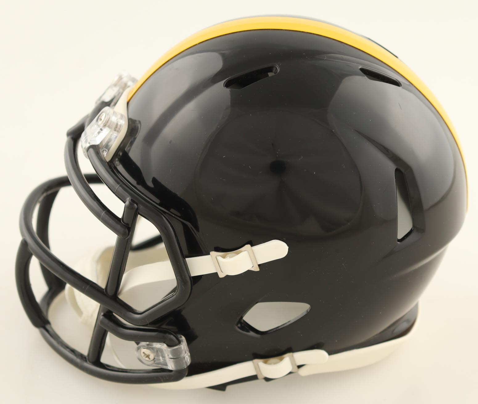 Riddell Pittsburgh Steelers Speed mini helmet has been hand-signed by Terry Bradshaw (HOF).