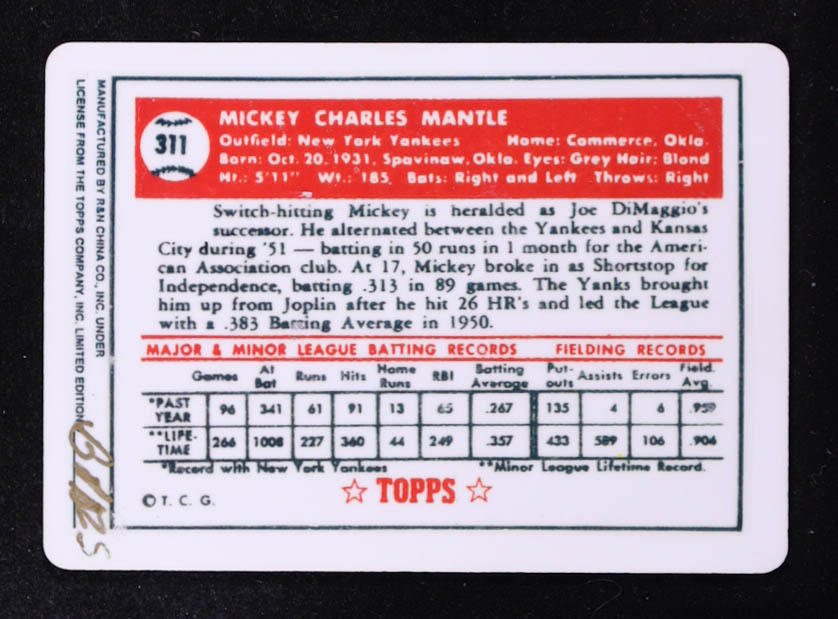 Mickey Mantle 1995 LE The Hamilton Collection Ceramic Card '52 #311
