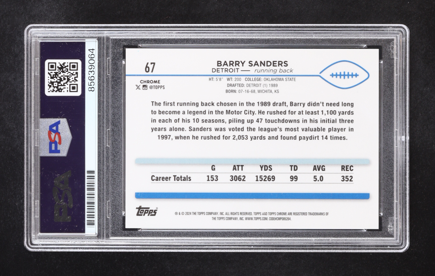 Barry Sanders Signed 2024 Topps Chrome Gold Geometric Refractors #67 #30/50 (PSA | Auto 10)