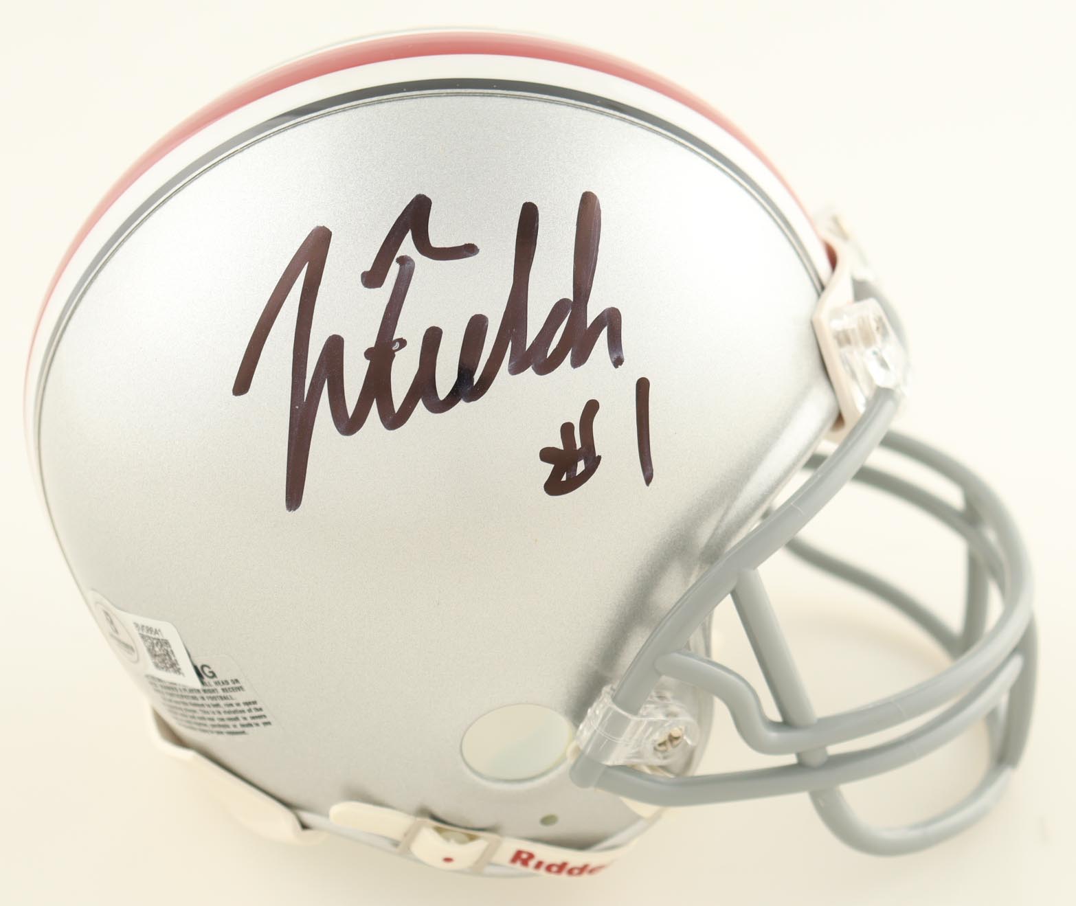 Riddell Ohio State Buckeyes mini helmet. Hand-signed by Justin Fields.