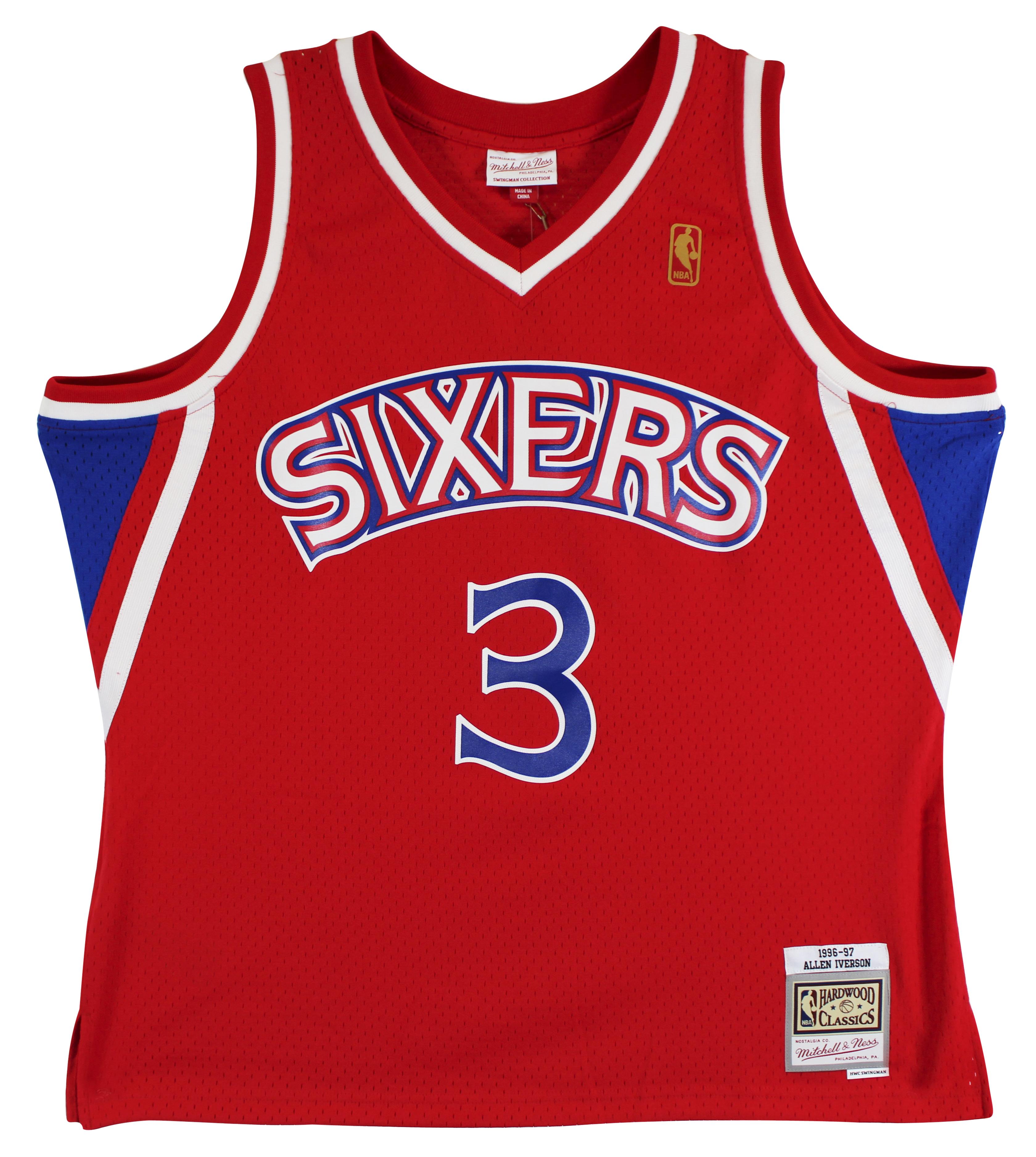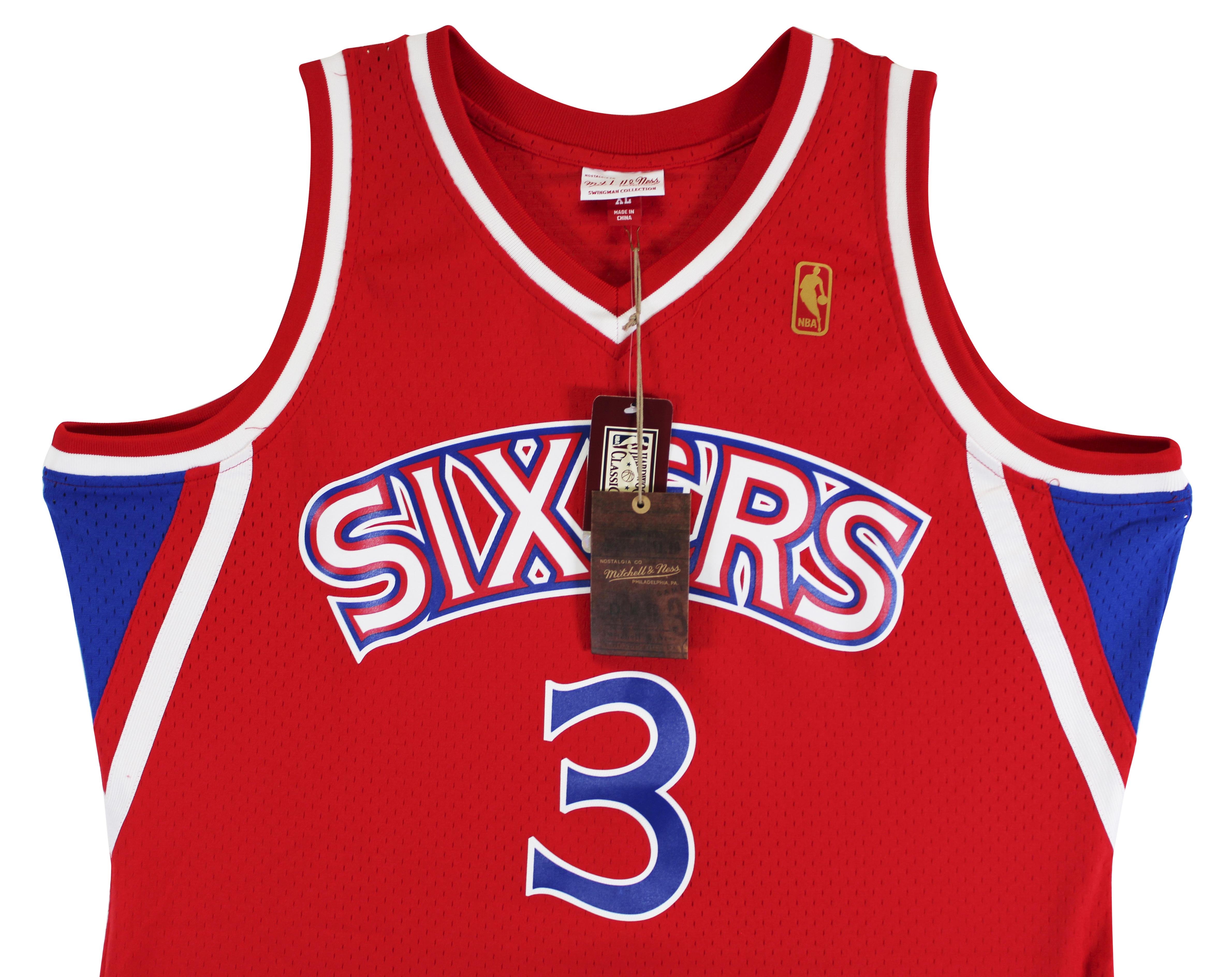 Mitchell & Ness jersey with everything sewn on, size XL. Hand-signed by Allen Iverson (Philadelphia 76ers, HOF).