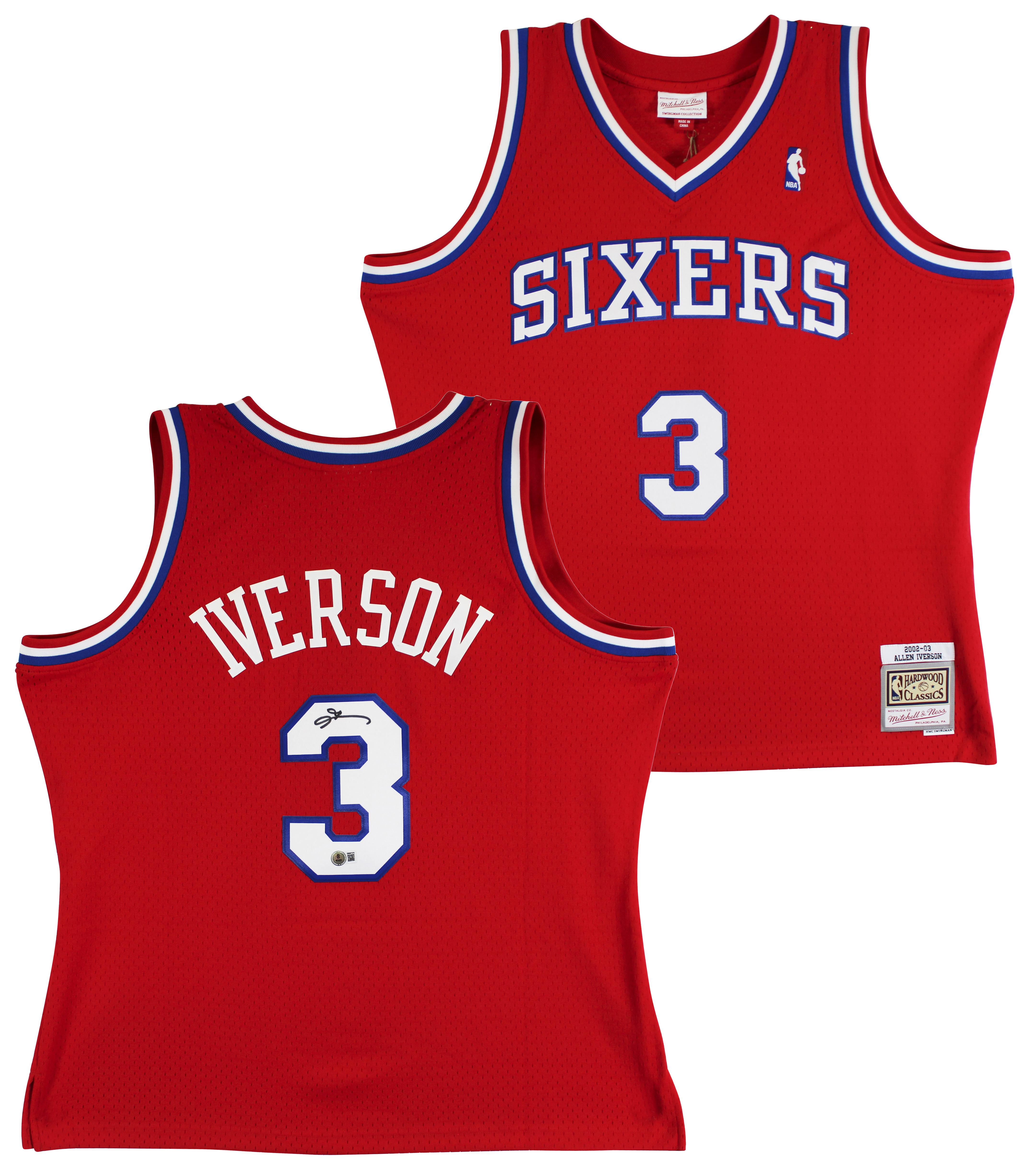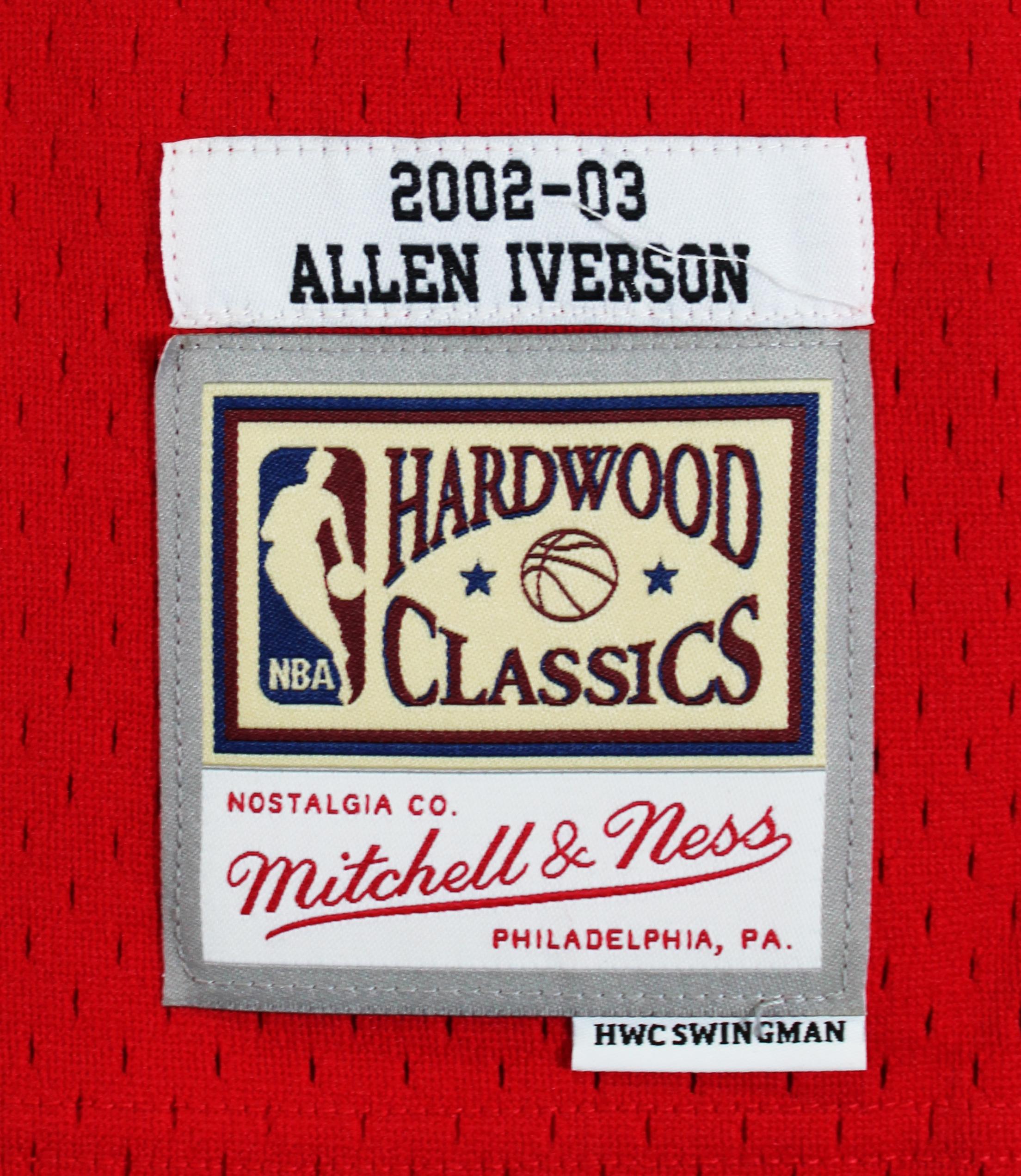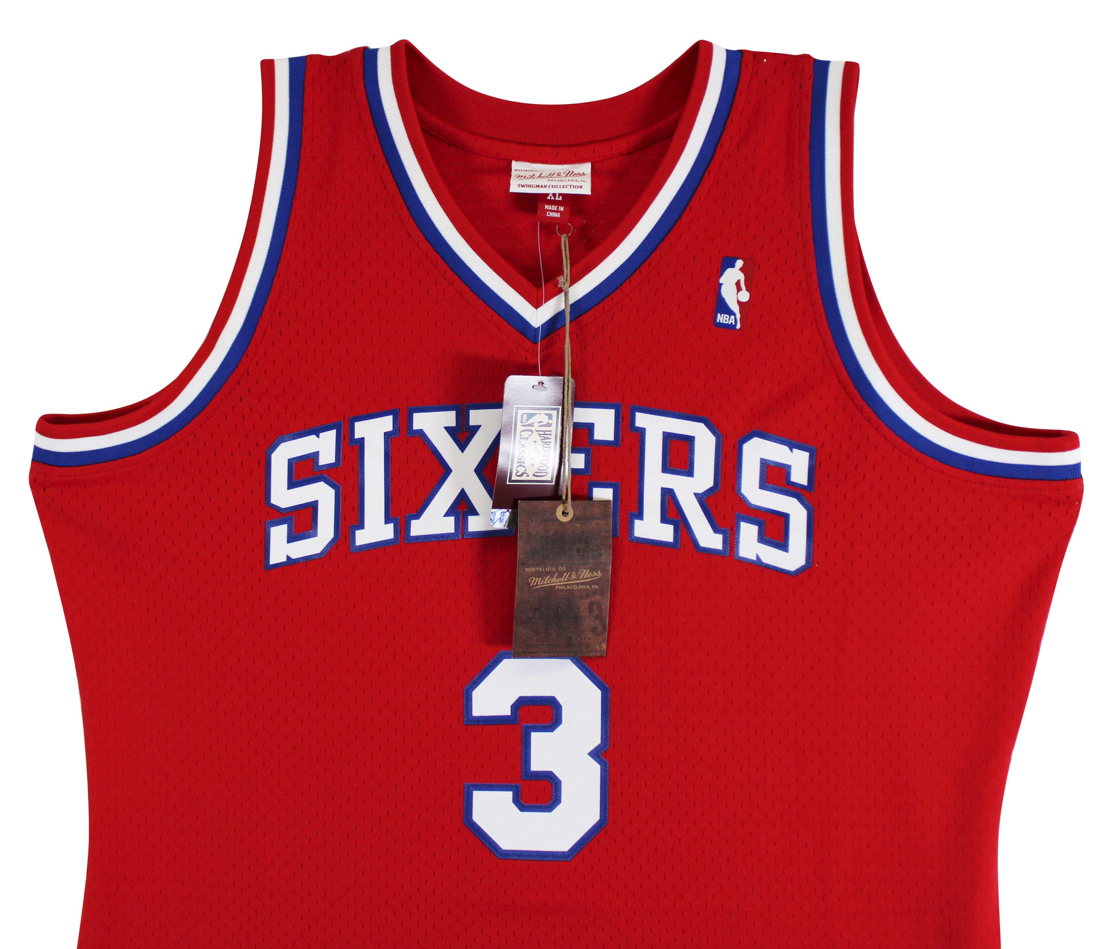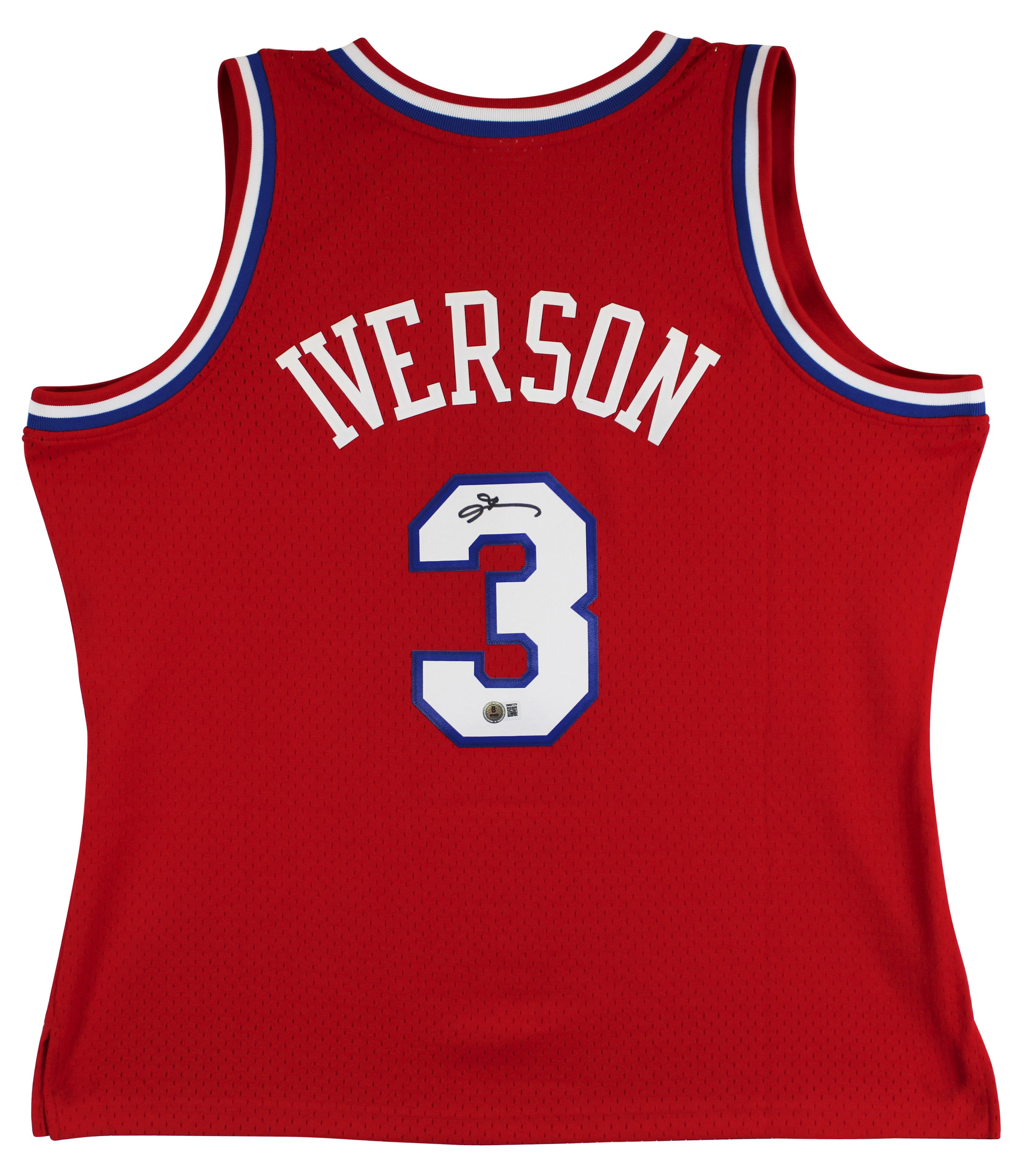 Mitchell & Ness jersey with everything sewn on, size XL. Hand-signed by Allen Iverson (Philadelphia 76ers, HOF).