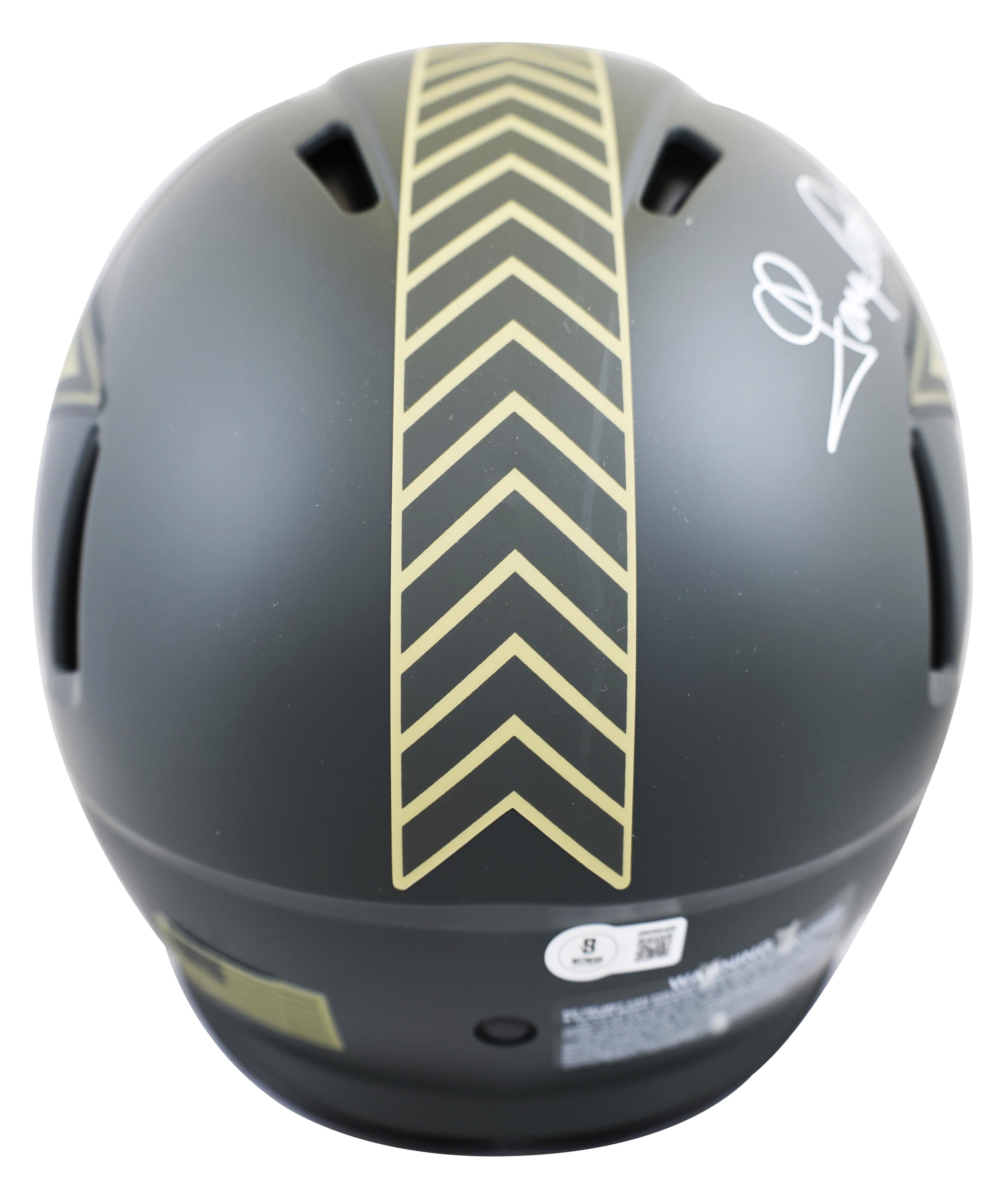Riddell Dallas Cowboys full-size authentic on-field salute to service alternate speed helmet. Hand-signed and inscribed by Tony Dorsett (HOF).