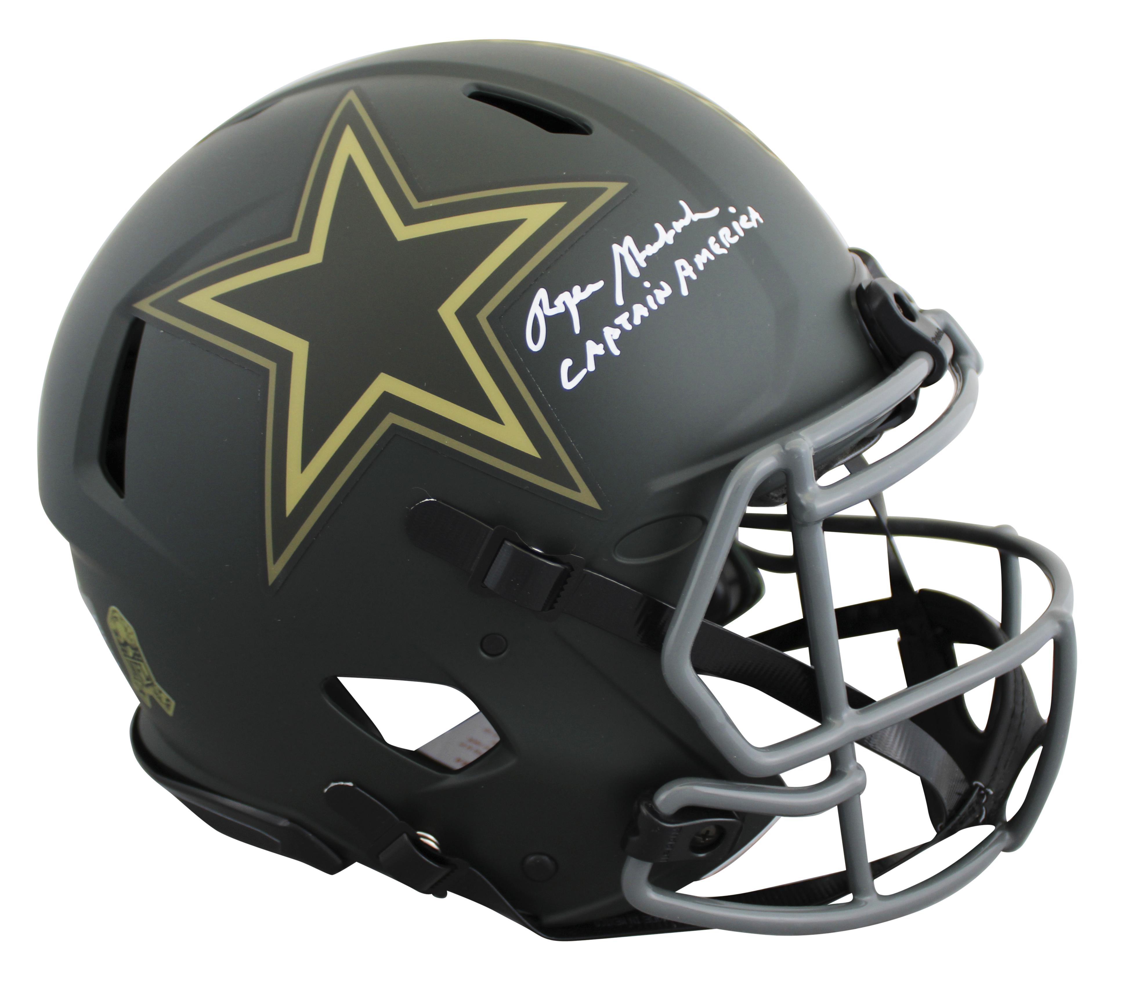 Roger Staubach Signed Cowboys Full-Size Authentic On-Field Salute to Service Alternate Speed Helmet Inscribed "Captain America" (Beckett)