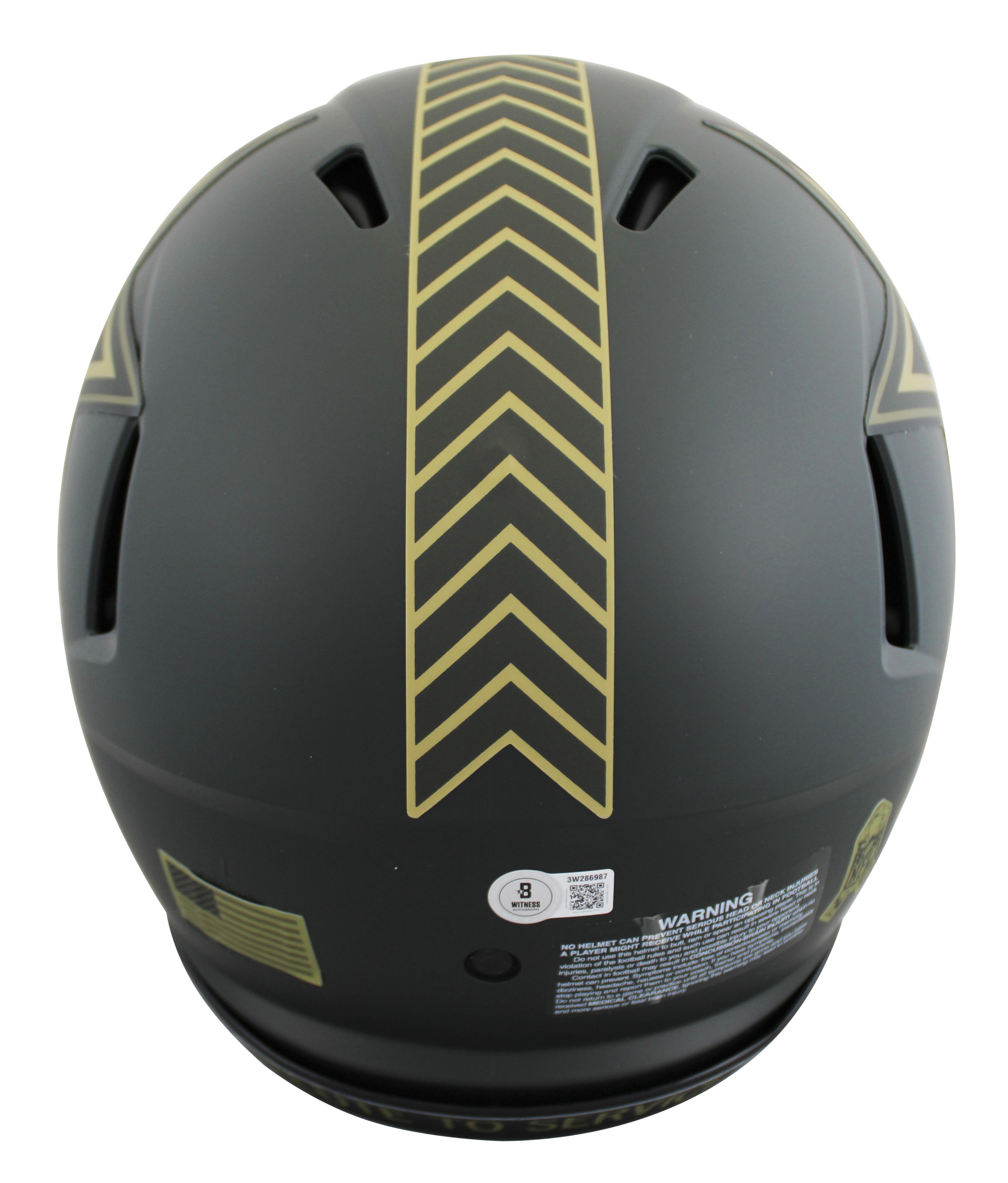 Riddell Dallas Cowboys full-size authentic on-field salute to service alternate speed helmet. Hand-signed and inscribed by Roger Staubach (HOF).