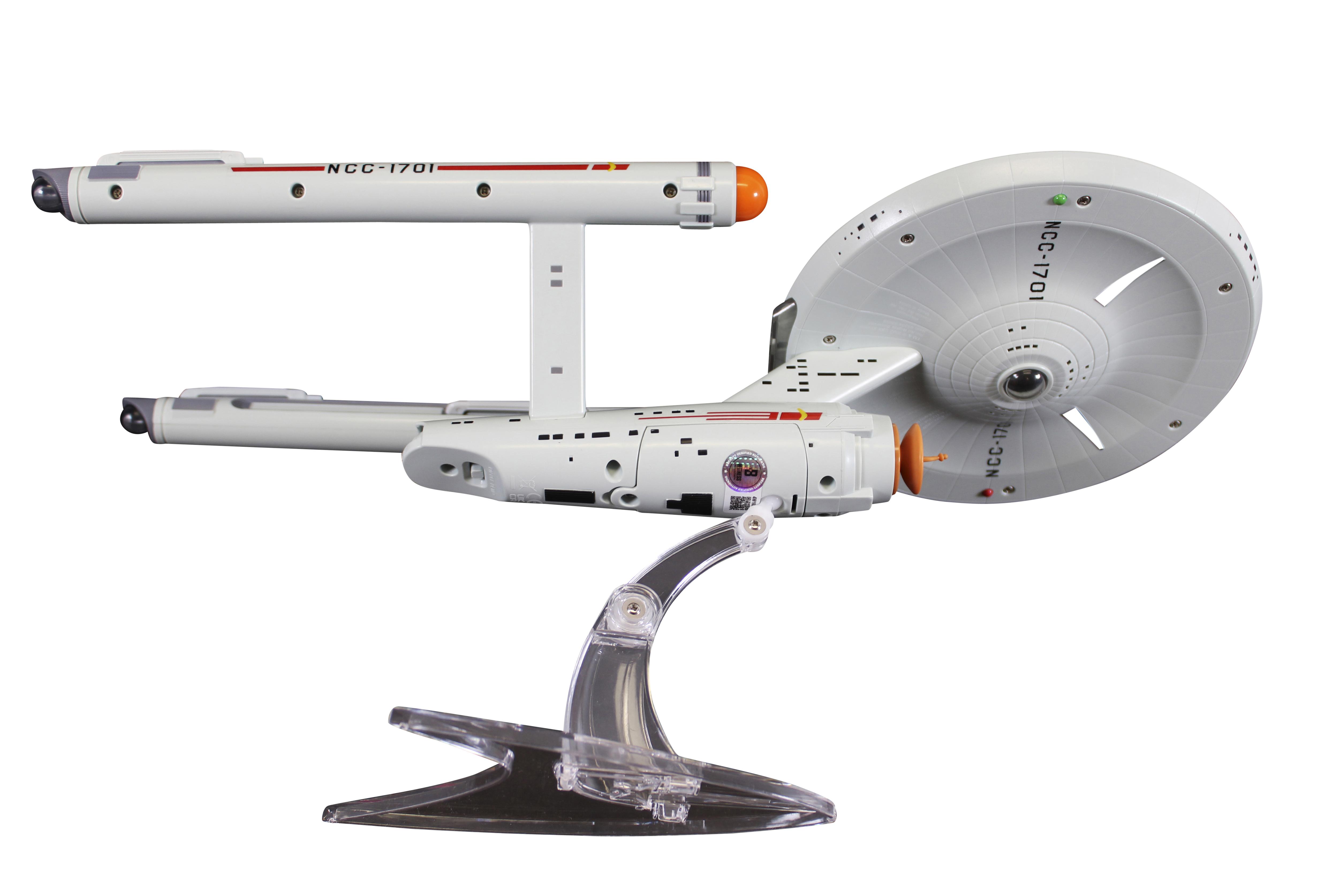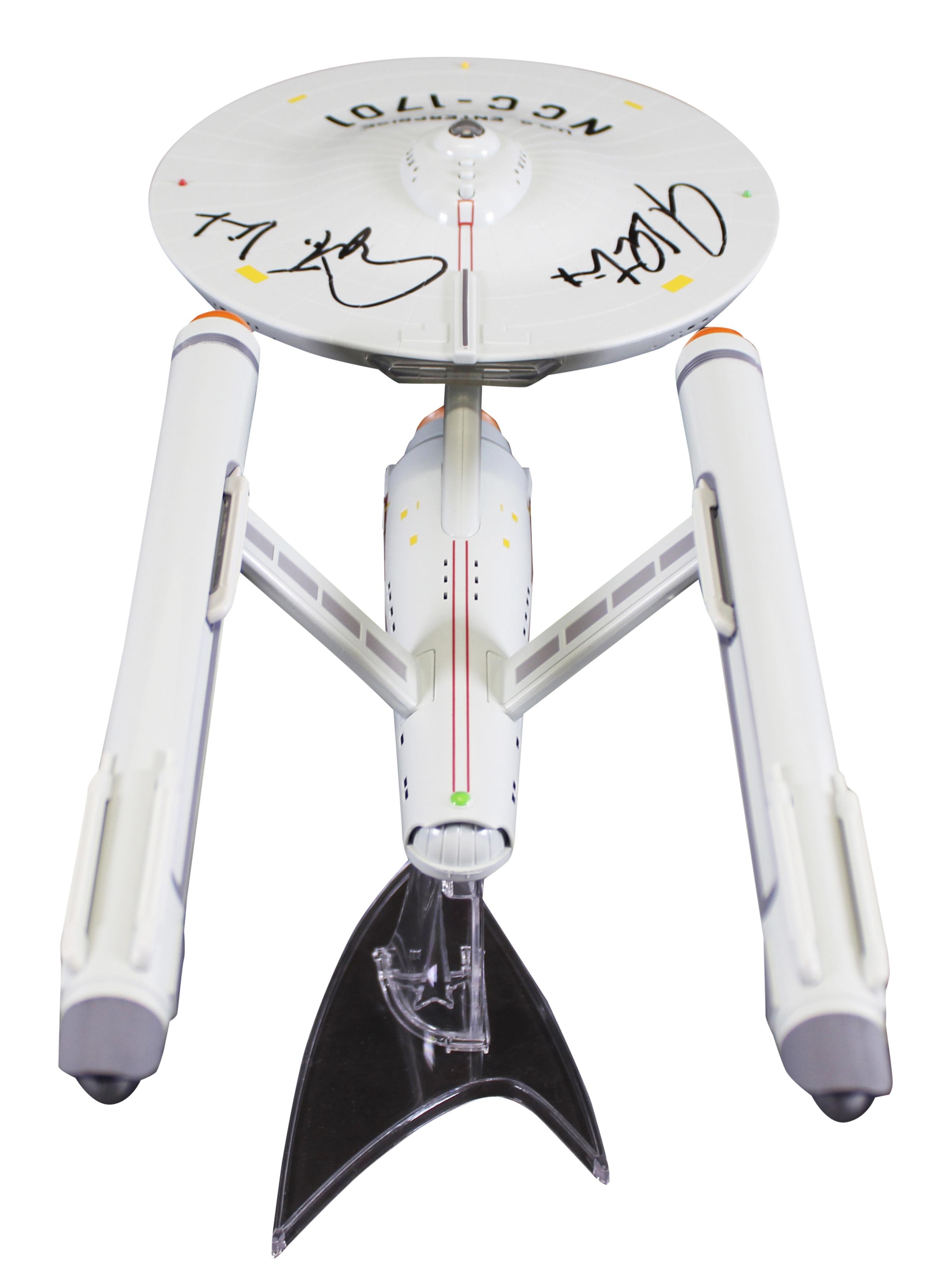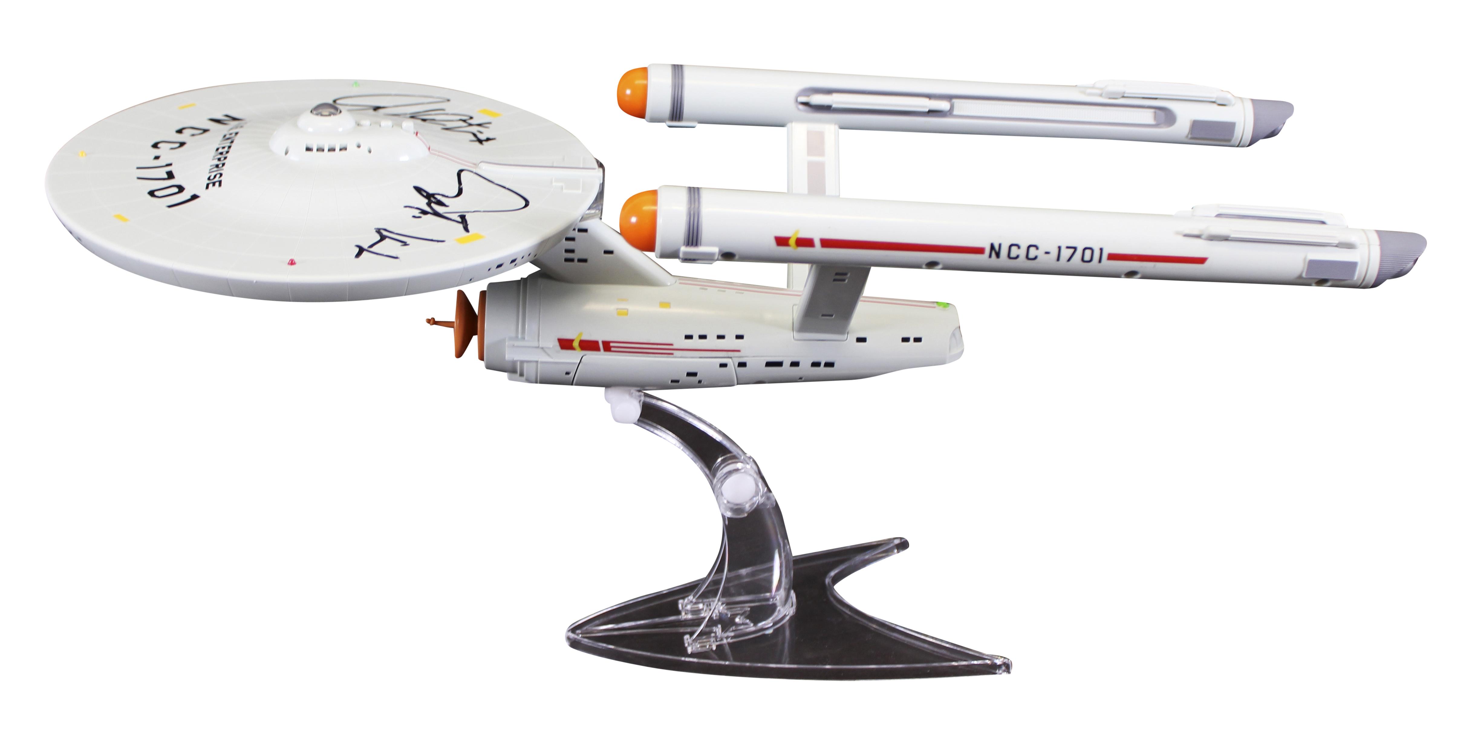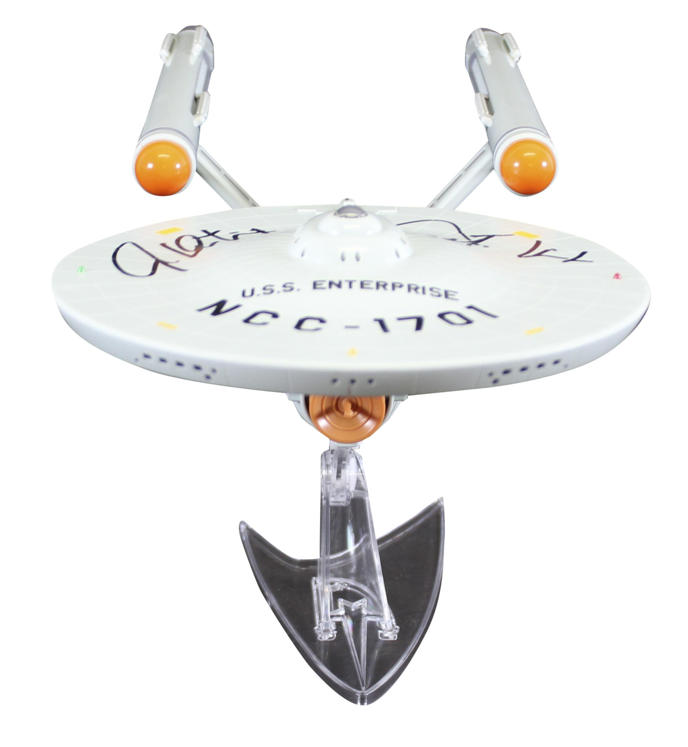 Playmates "Star Trek: The Original Series" USS Enterprise NCC-1701 figurine has been hand-signed and inscribed by William Shatner (Captain Kirk).
