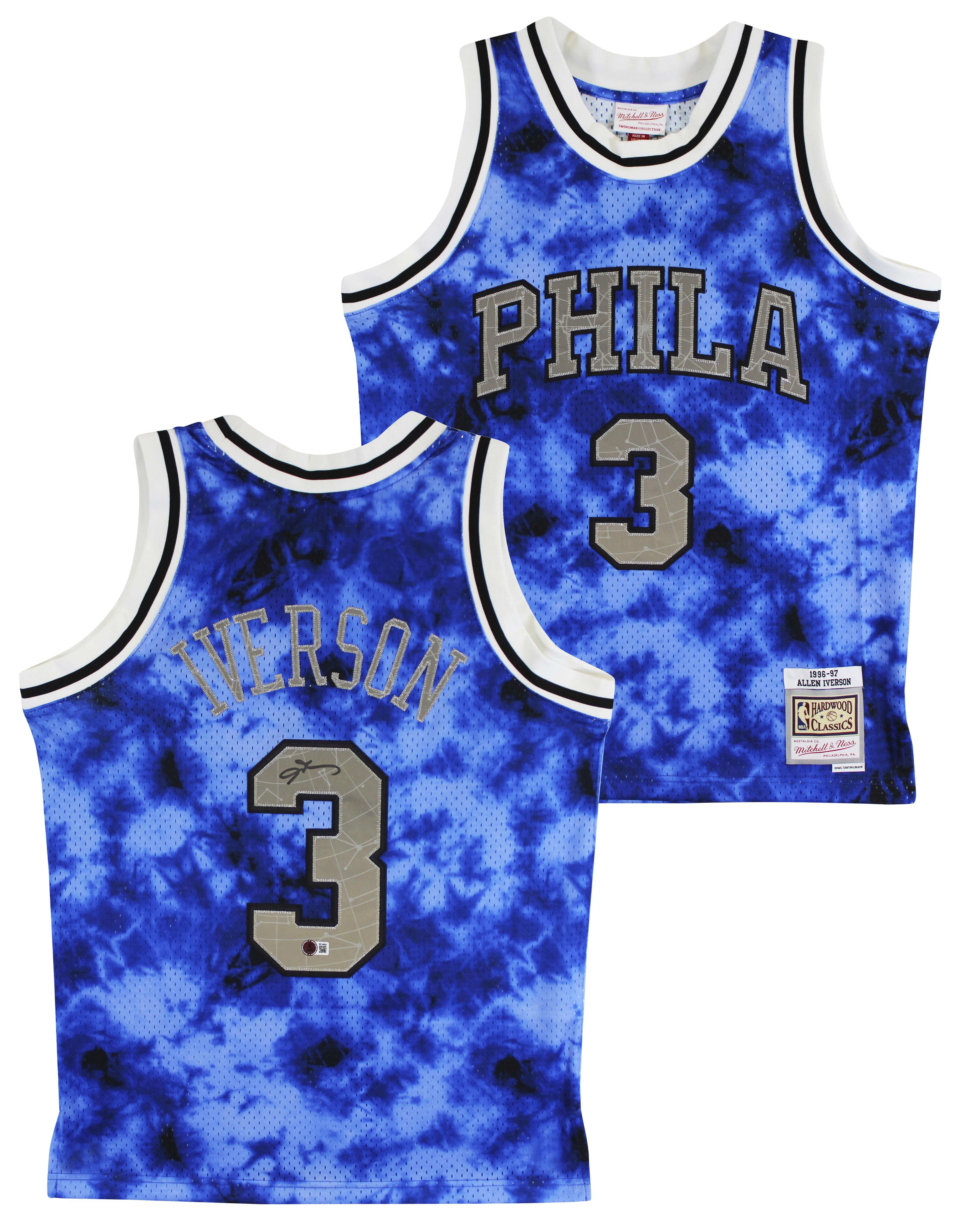 Mitchell & Ness jersey with everything sewn on, size M. Hand-signed by Allen Iverson (Philadelphia 76ers, HOF).