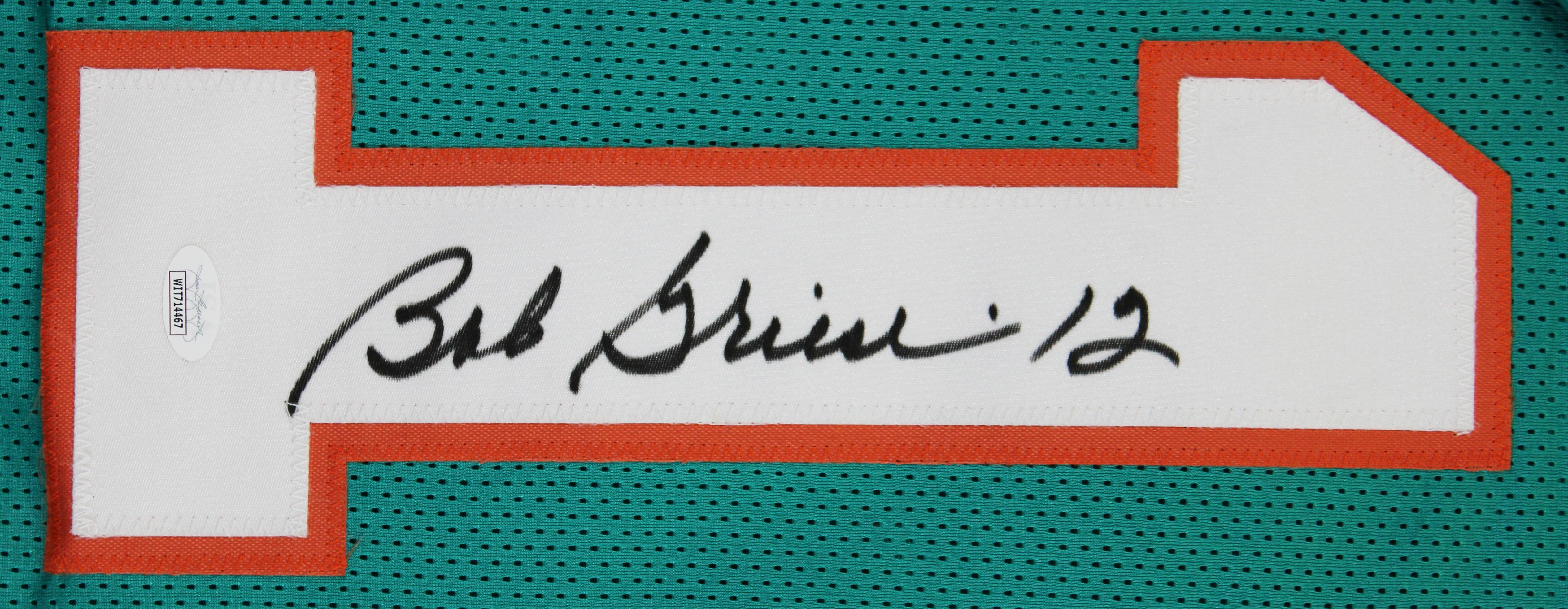Custom style jersey with everything sewn on, size XL. Hand-signed by Bob Griese (HOF).