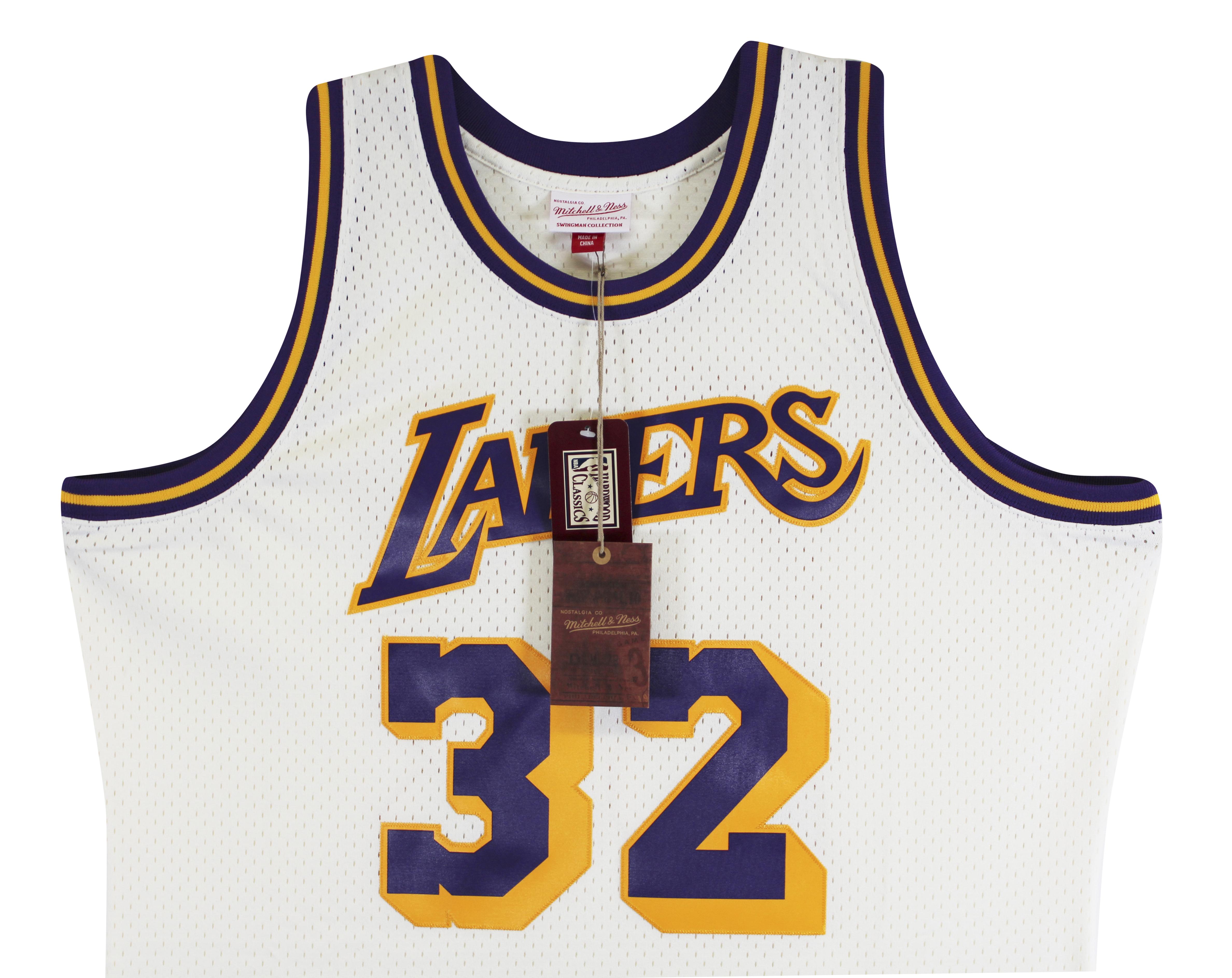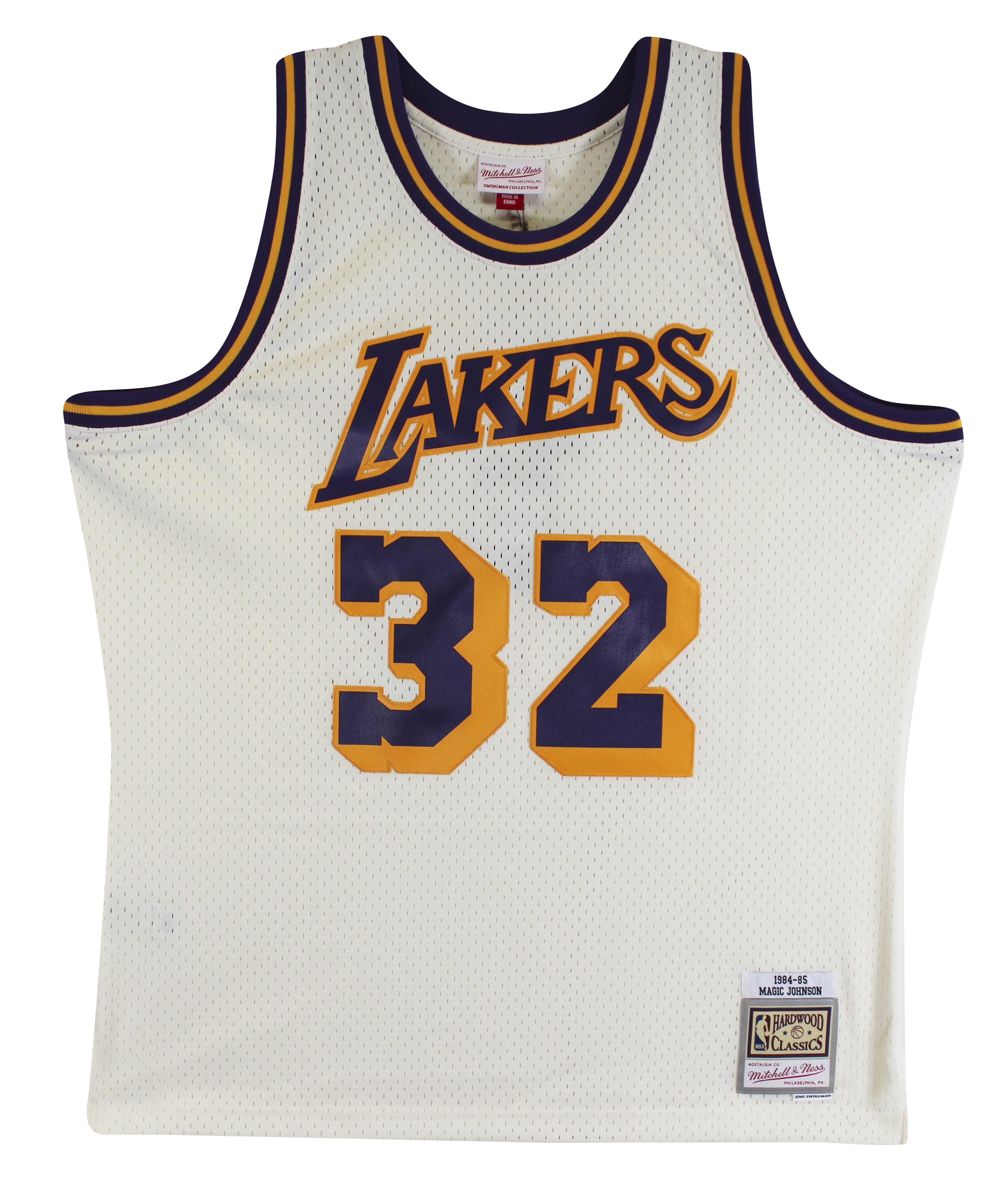 Mitchell & Ness jersey with everything sewn on, size XL. Hand-signed by Magic Johnson (Los Angeles Lakers, HOF).