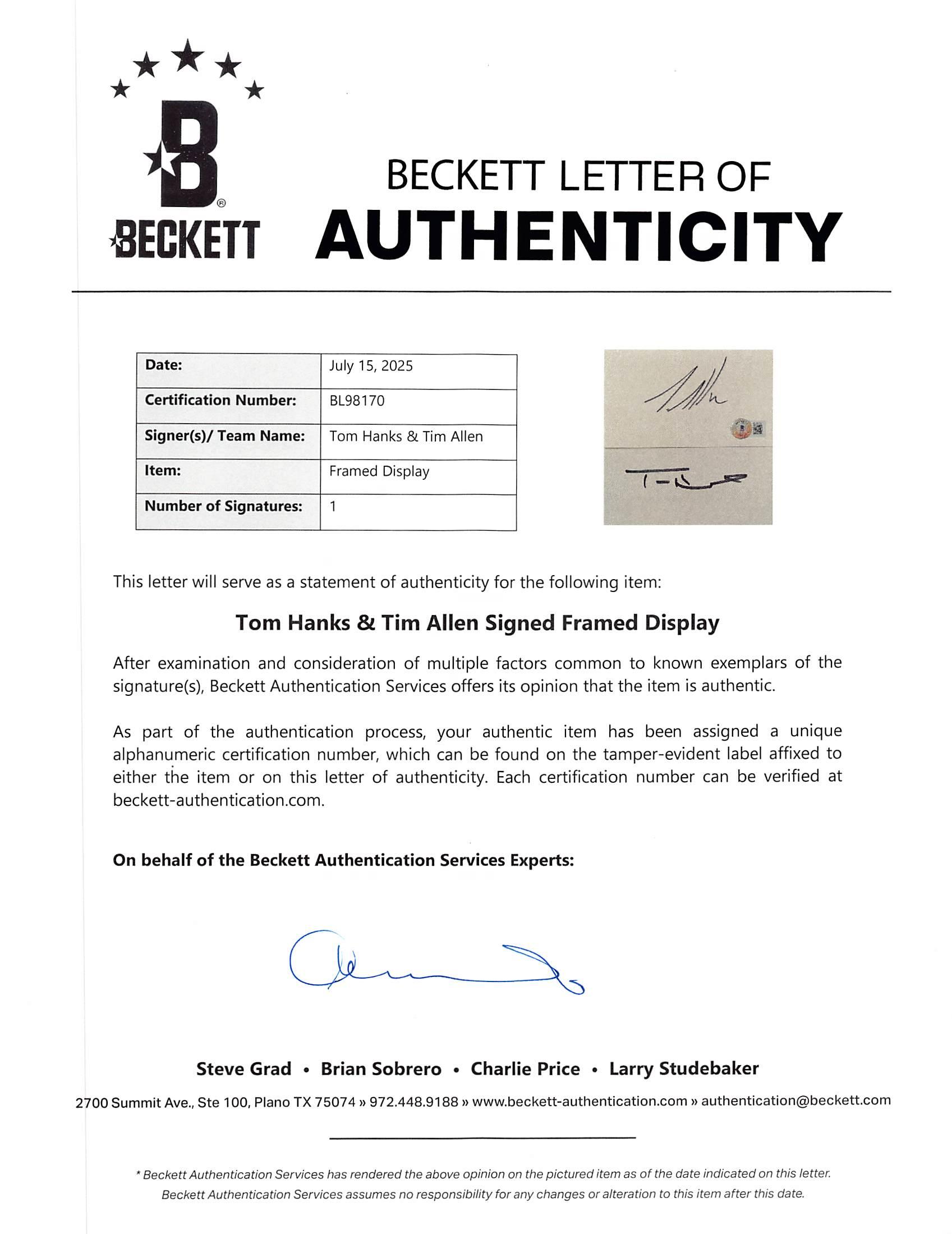Tim Allen & Tom Hanks Signed "Toy Story" Custom Framed Cut Display (Beckett)