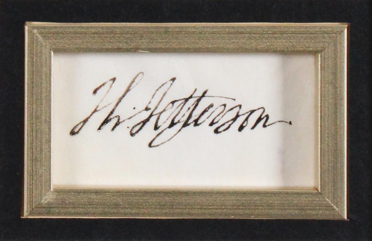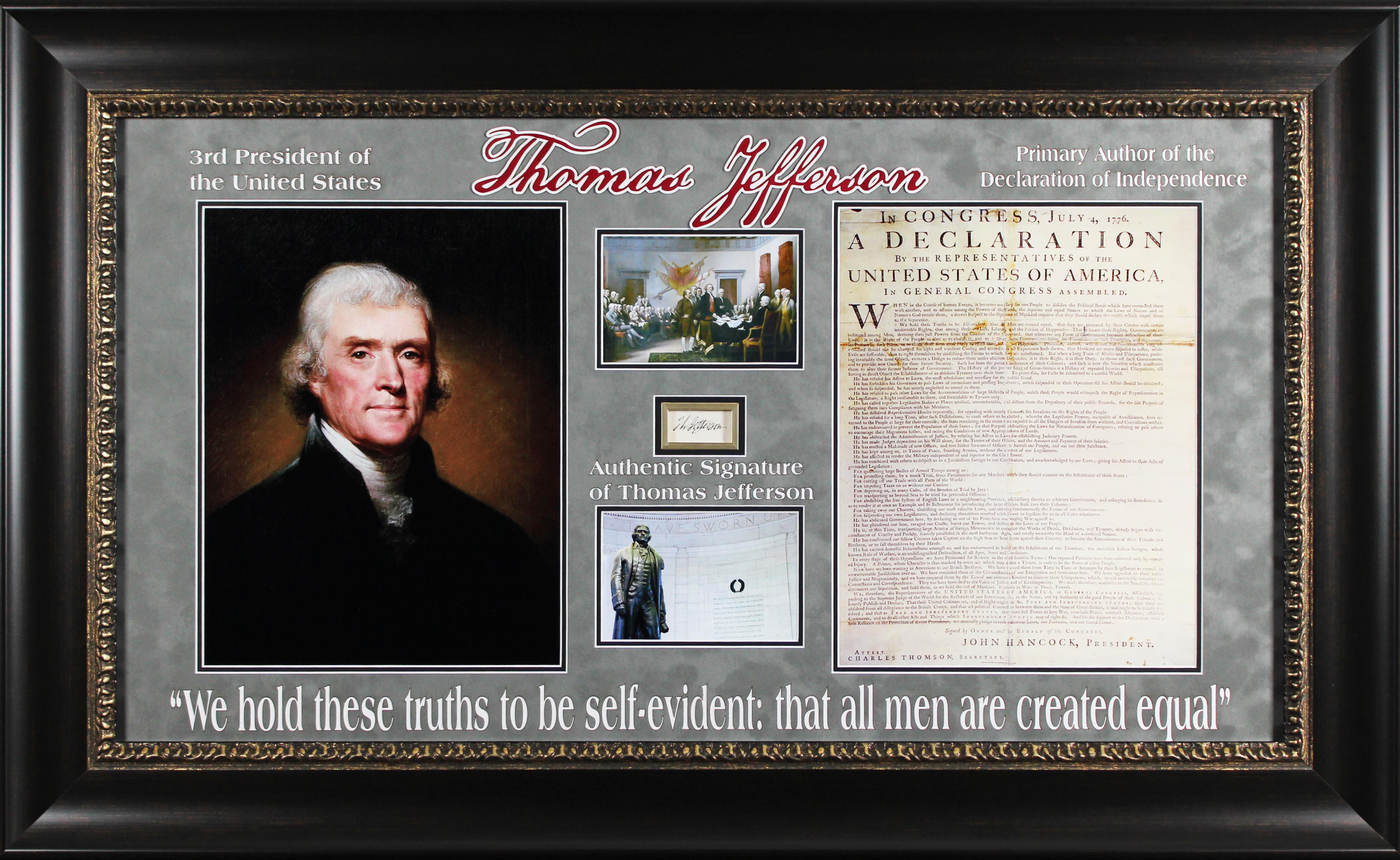 Custom frame measures 25.5" x 41.5” in size and features a cut that has been hand-signed by Thomas Jefferson (D. 1826).