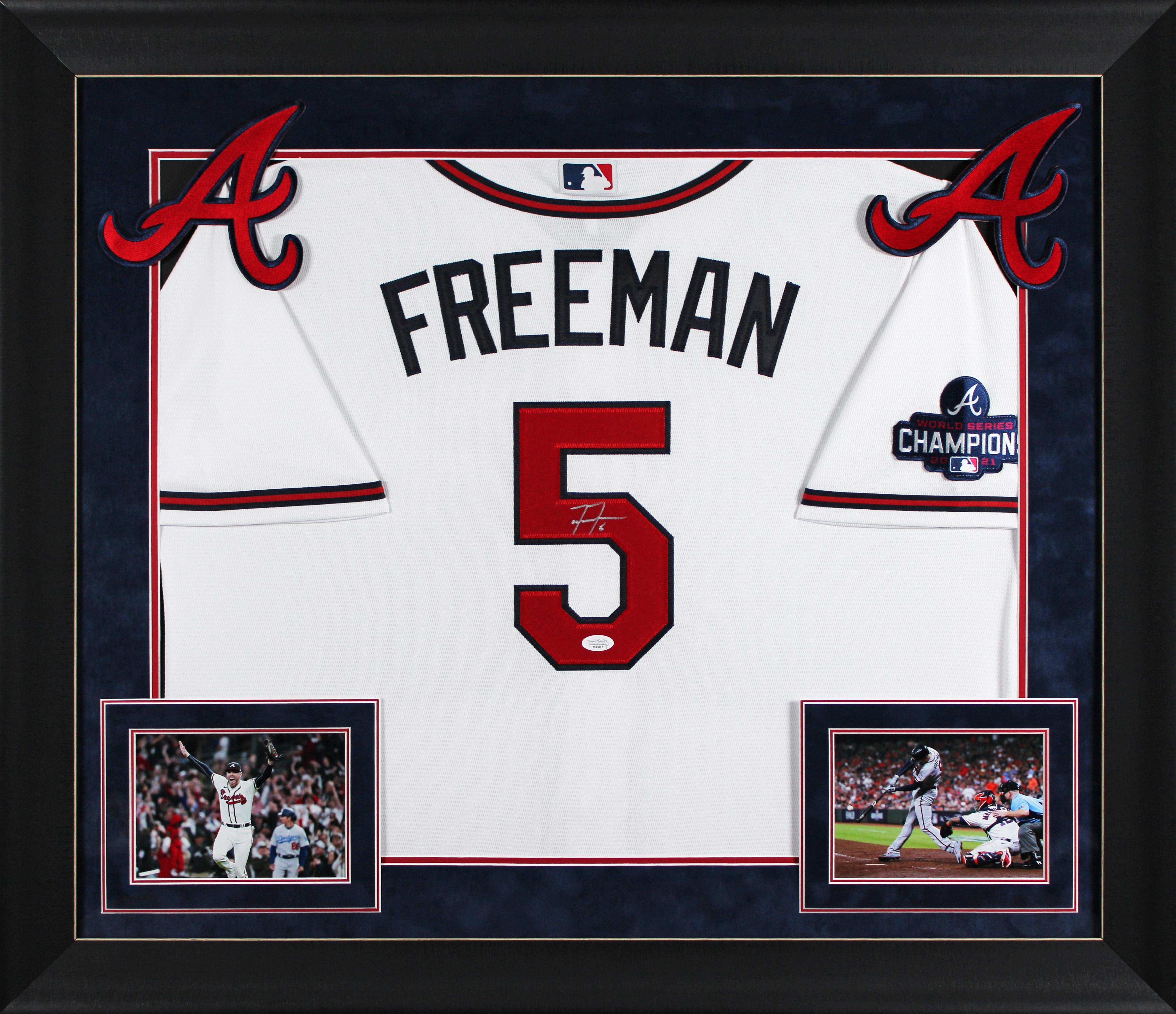 Freddie Freeman Signed Braves Custom Framed Nike Authentic Jersey with 2021 World Series Patch (JSA)