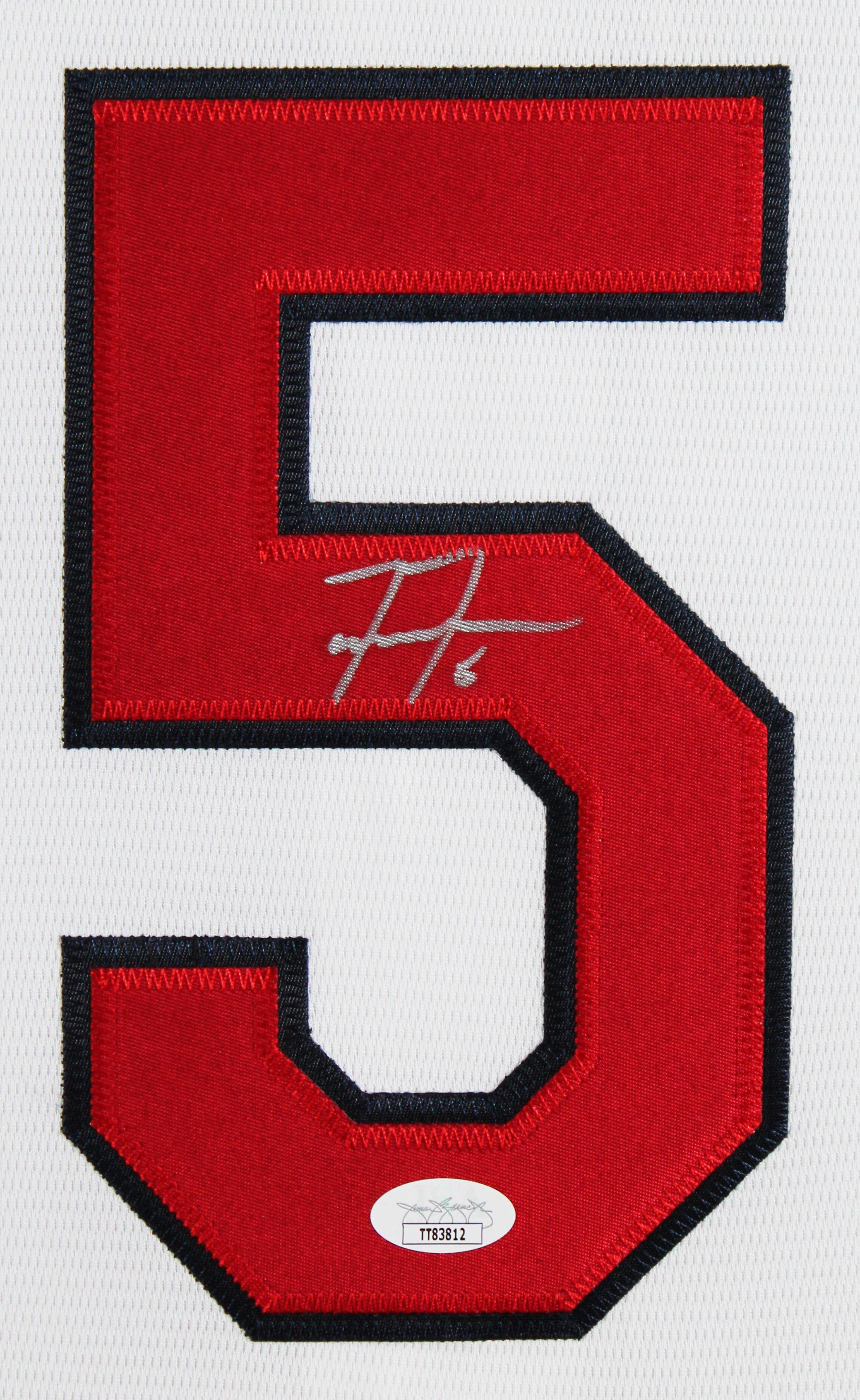 Custom frame measures 32" x 37” in size and features a Nike jersey that has been hand-signed by Freddie Freeman (Atlanta Braves).
