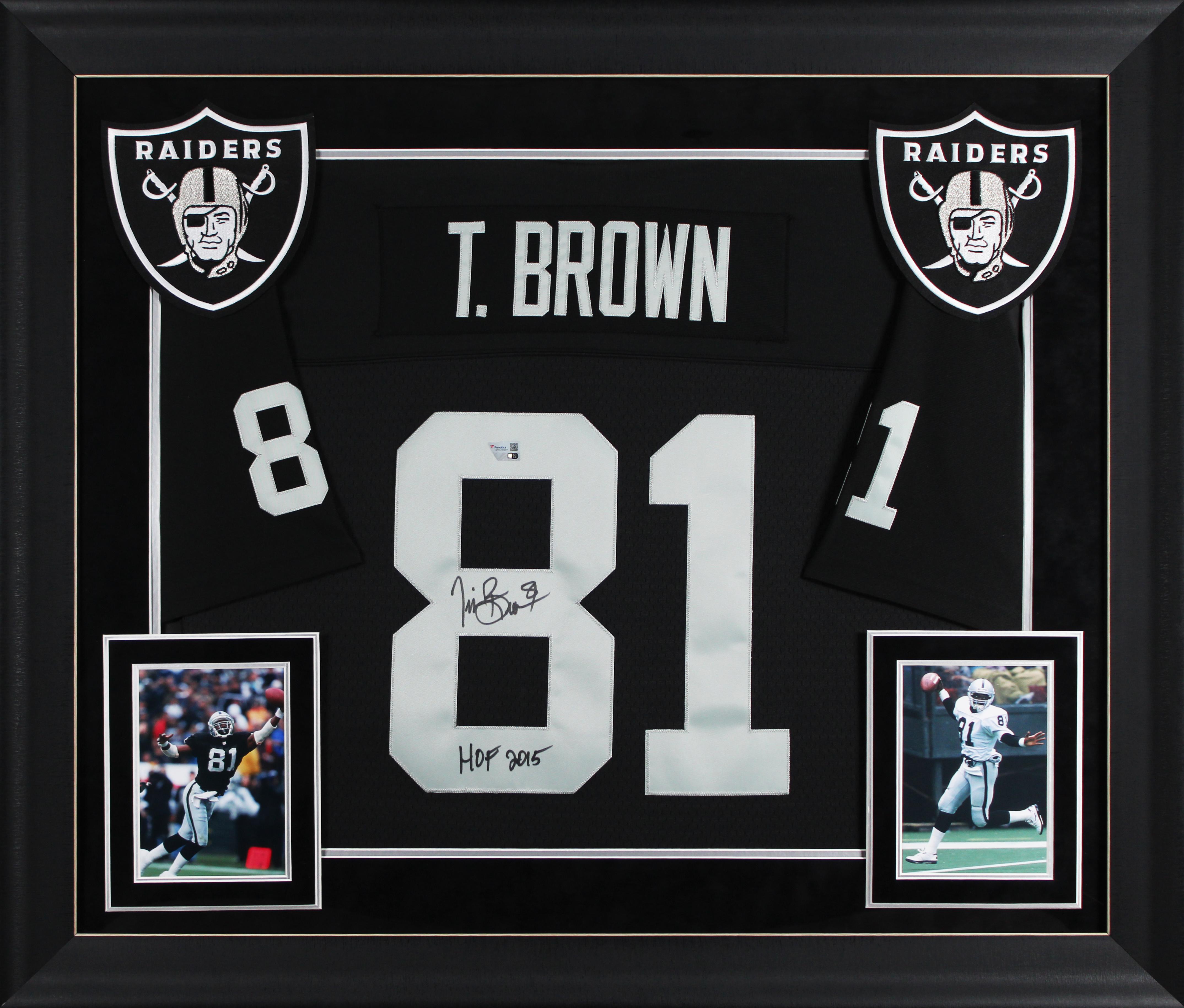 Tim Brown Signed Raiders Custom Framed Mitchell & Ness Authentic Jersey Inscribed "HOF 2015" (Fanatics)