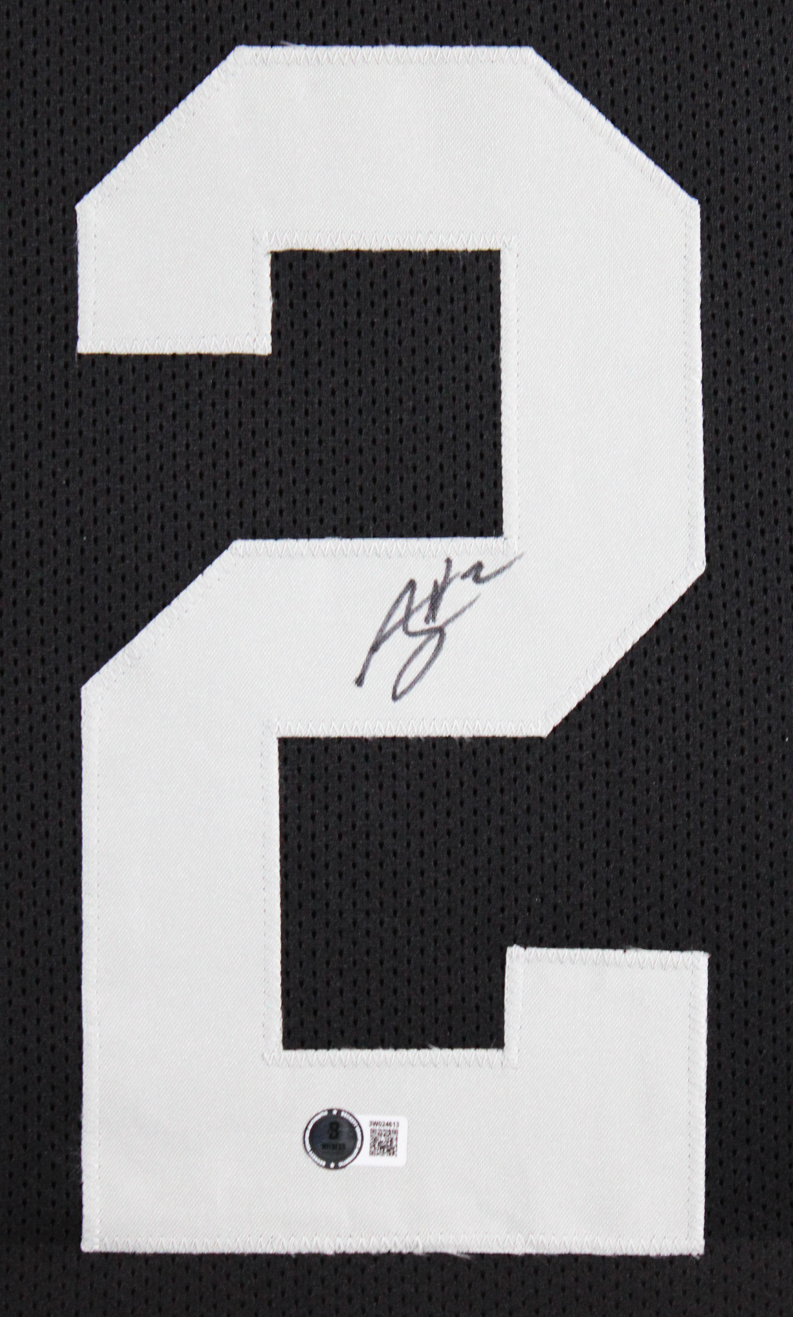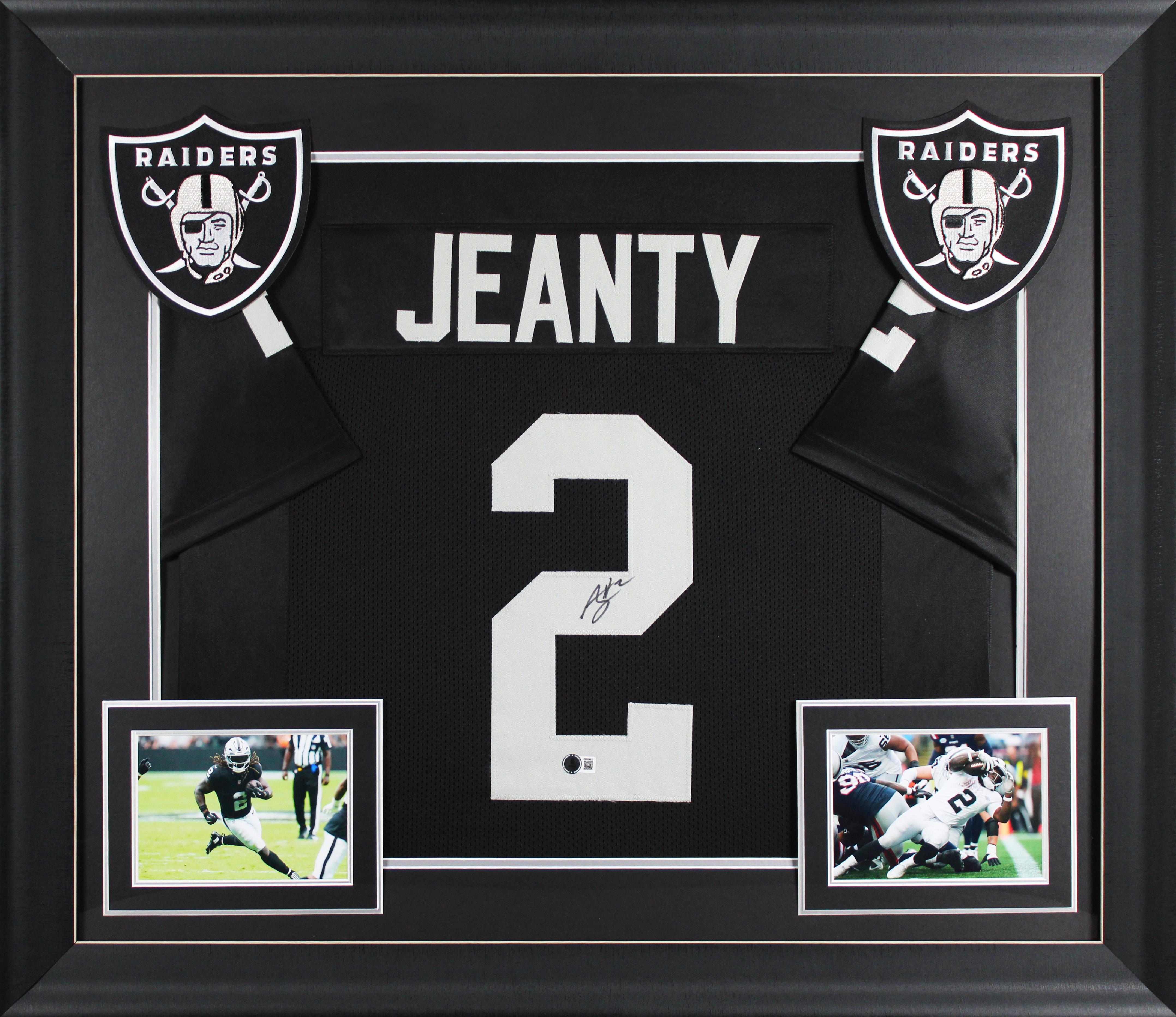 Custom frame measures 32" x 37” in size and features a jersey that has been hand-signed by Ashton Jeanty.