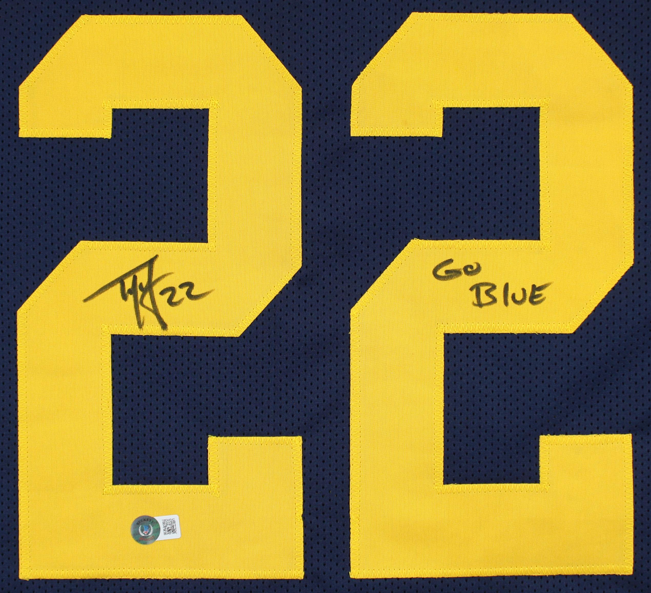 Ty Law Signed Custom Framed Jersey Inscribed "Go Blue" (Beckett)