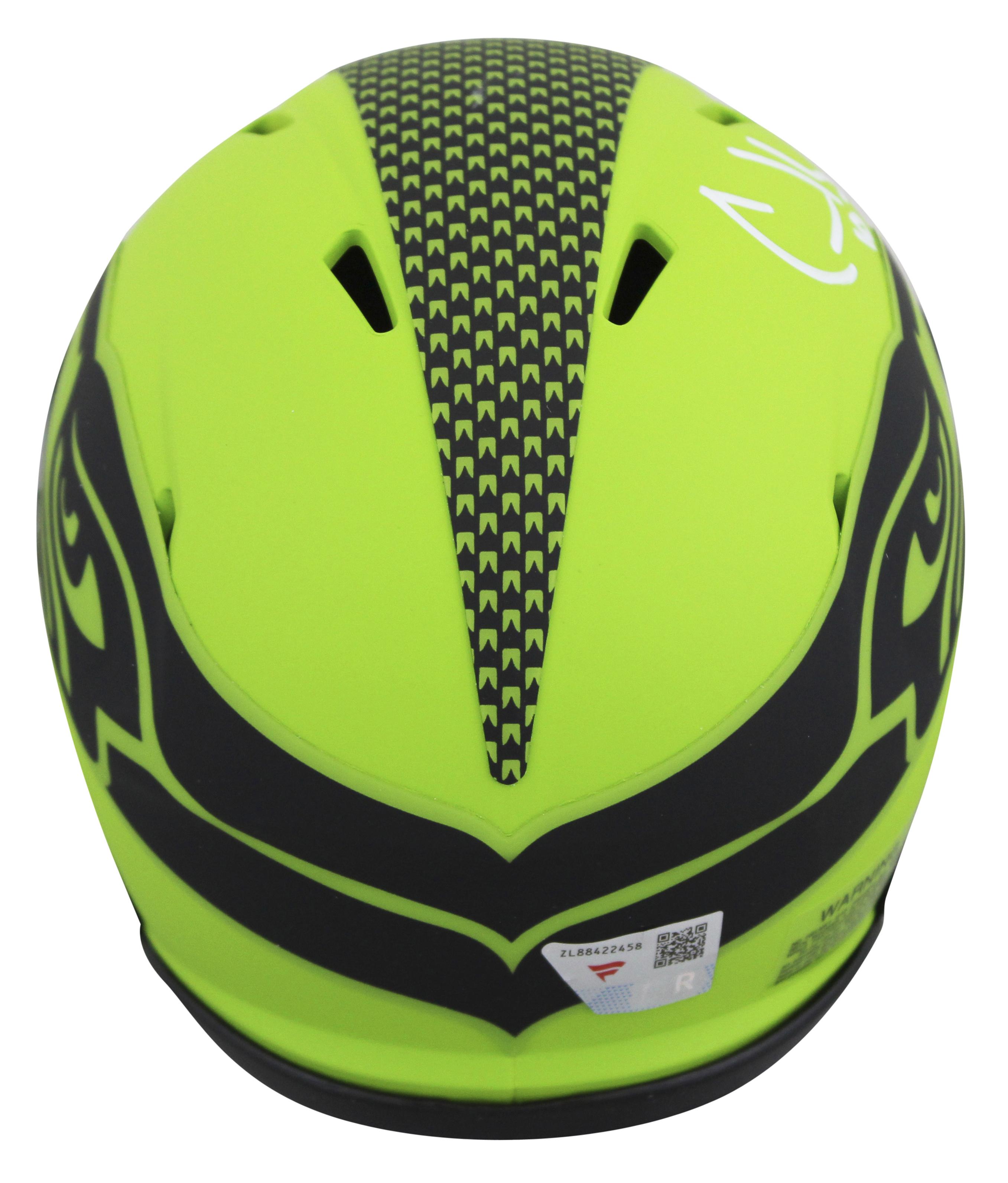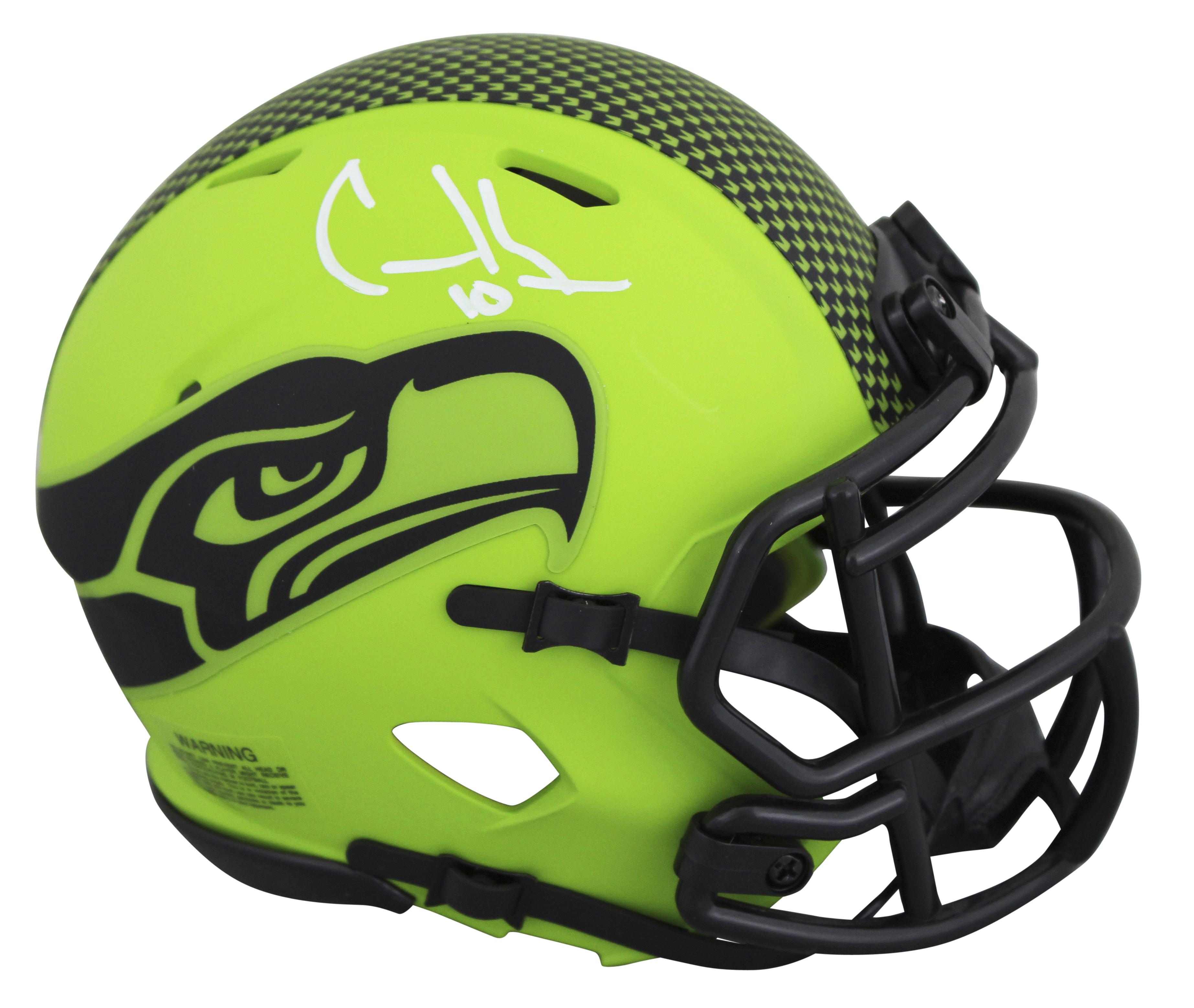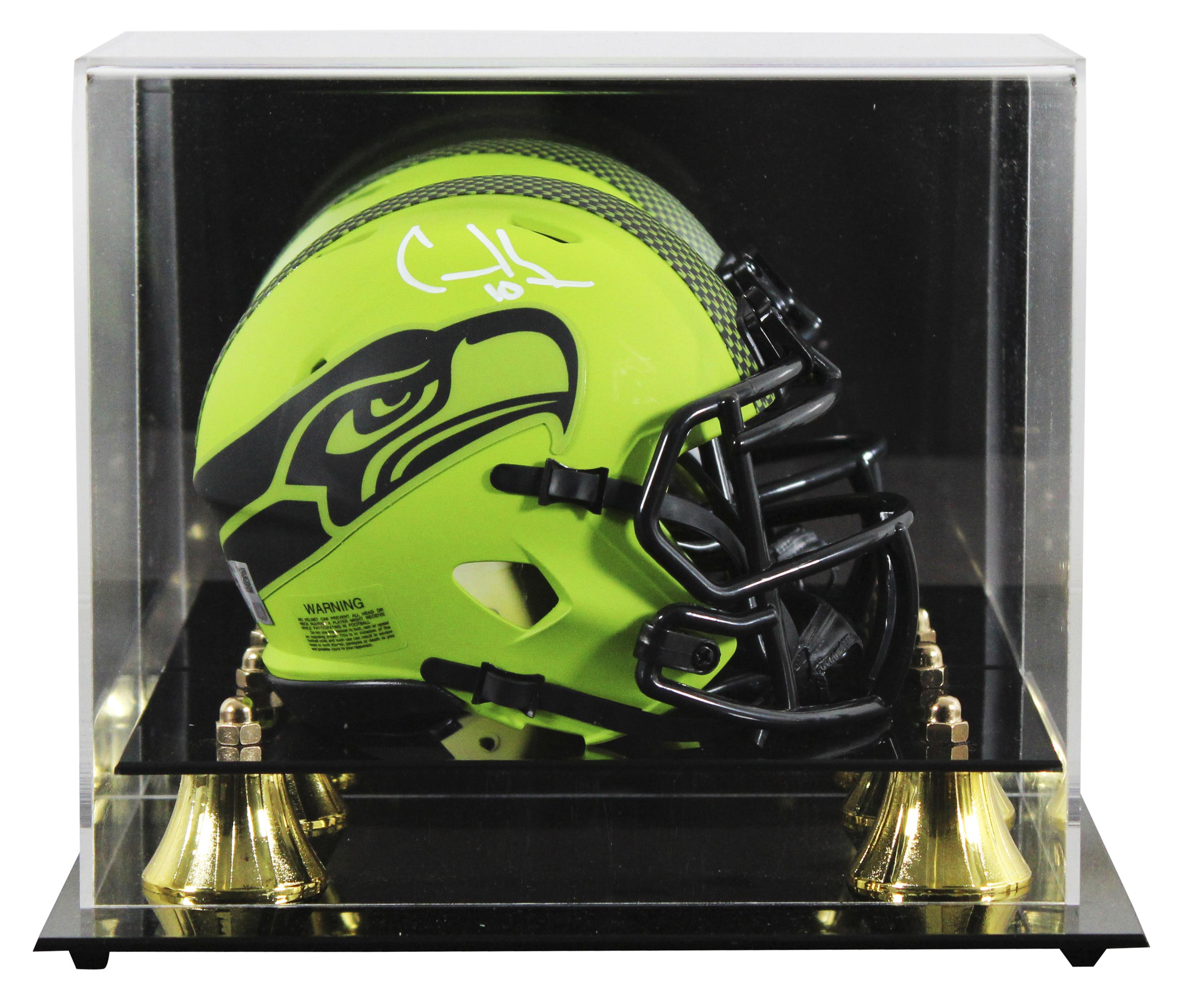 Riddell Seattle Seahawks rave alternate speed mini helmet has been hand-signed by Cooper Kupp. Display case is included as shown.