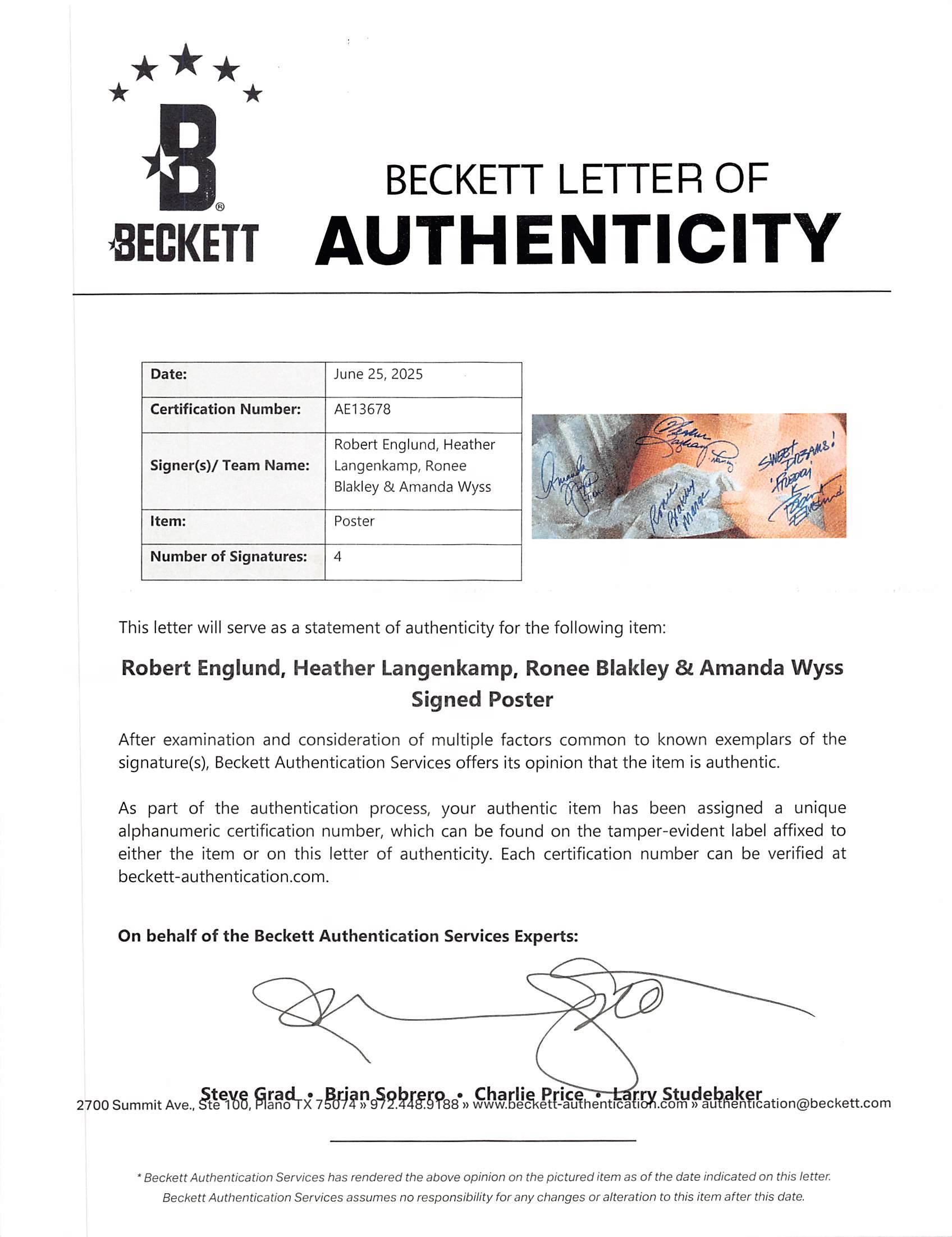 Movie poster measures 27" x 40" in size and has been hand-signed and inscribed by Robert Englund, Heather Langenkamp, Amanda Wyss and Ronnee Blakley. Each signer included a character inscription.