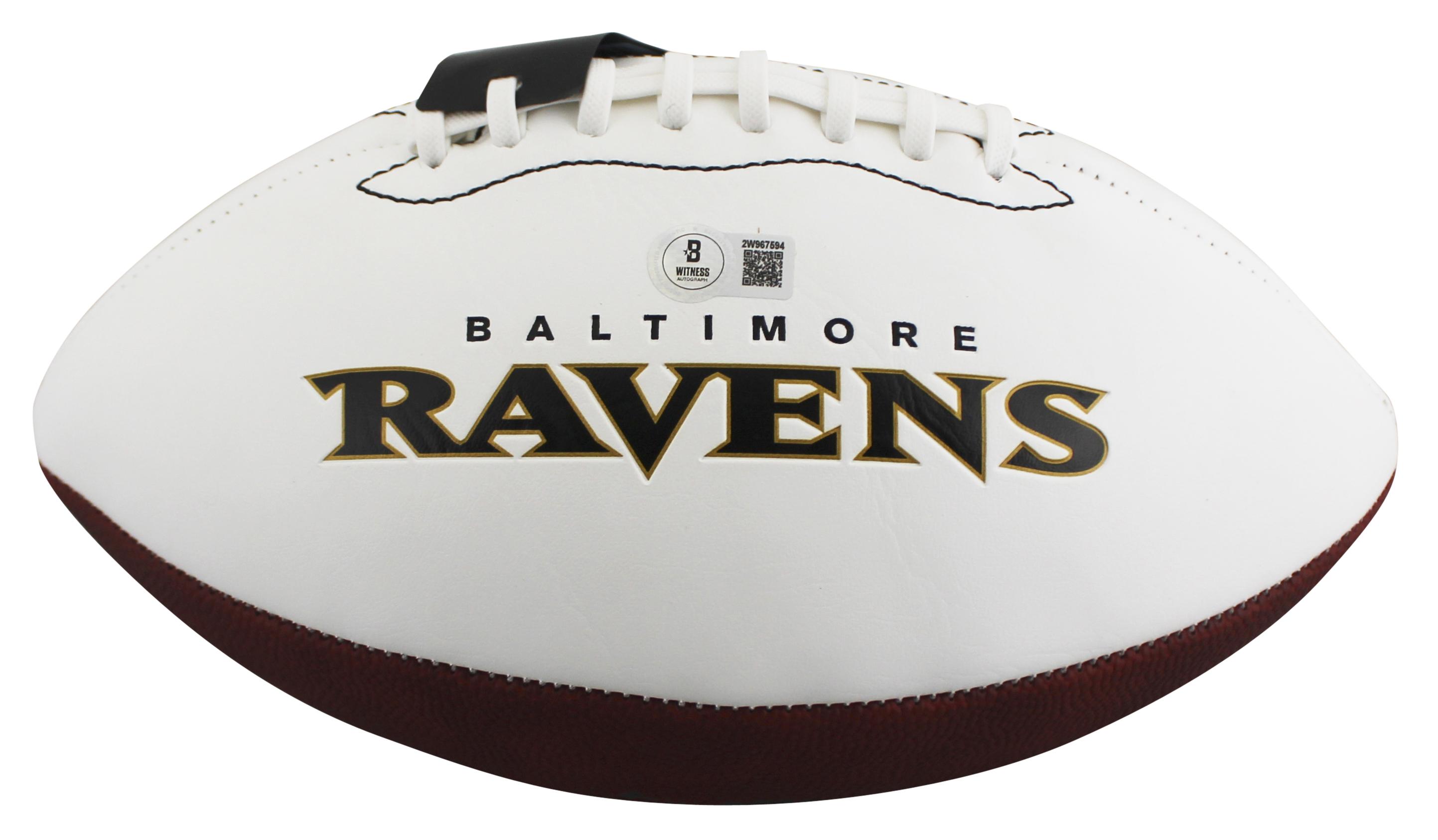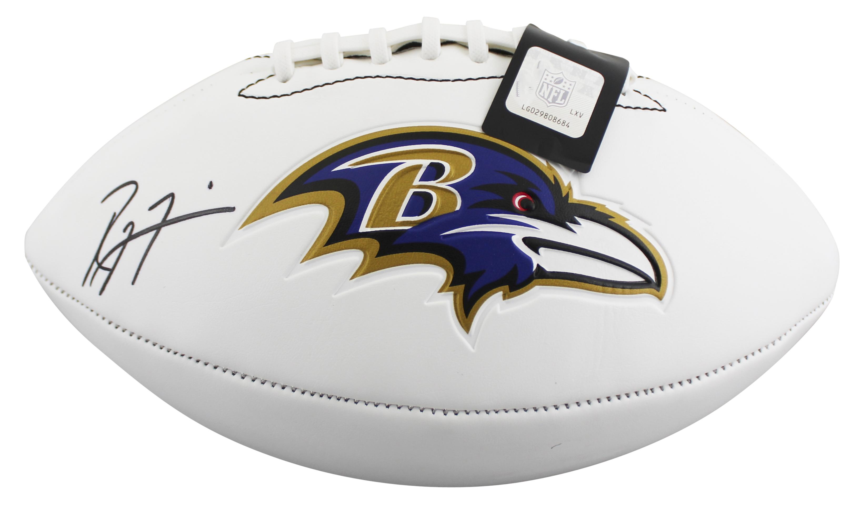 Baltimore Ravens logo football has been hand-signed by Ray Lewis (HOF).
