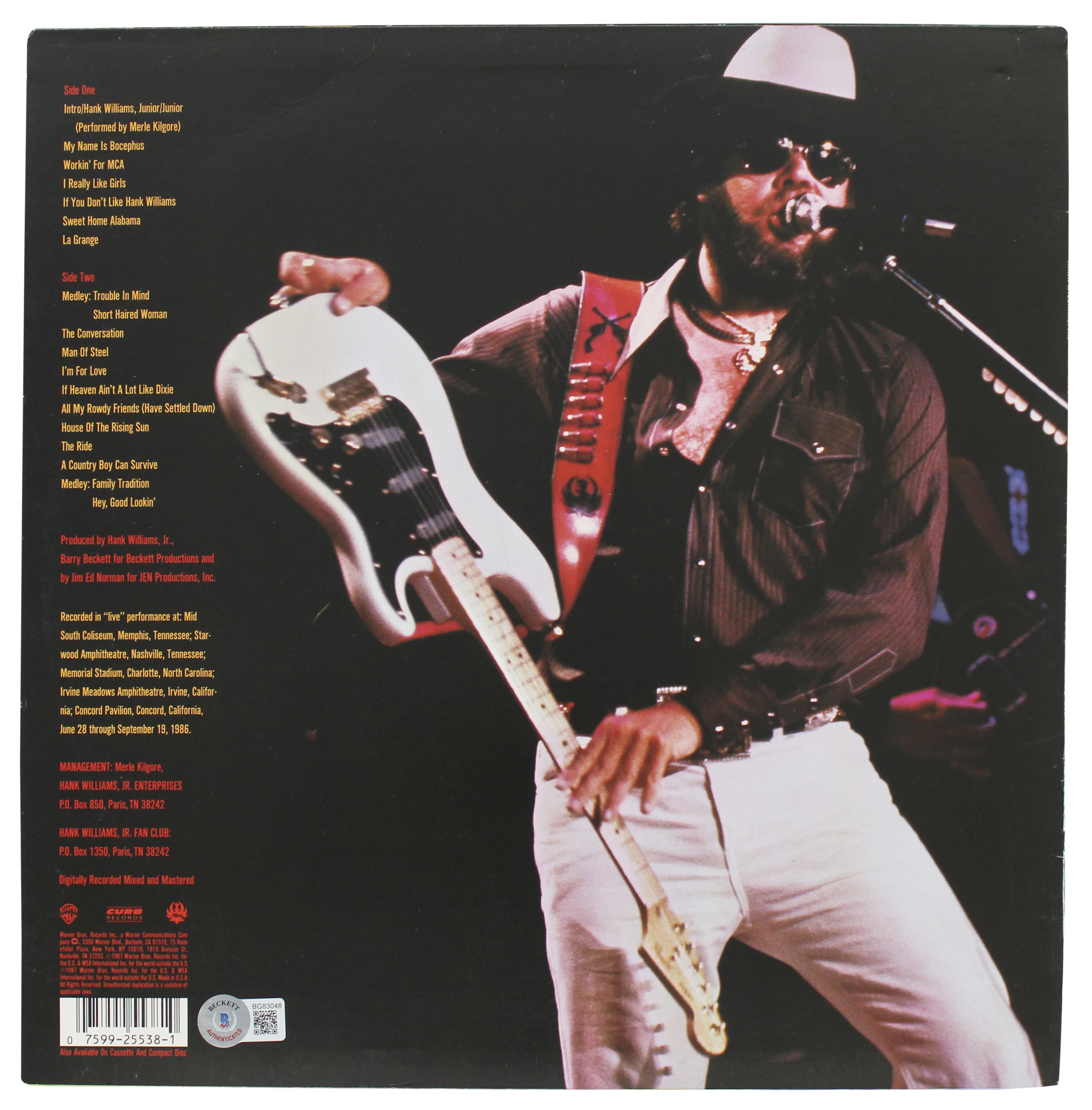 Hank Williams Jr. Signed "Hank Live" Vinyl Record Album Cover (Beckett)