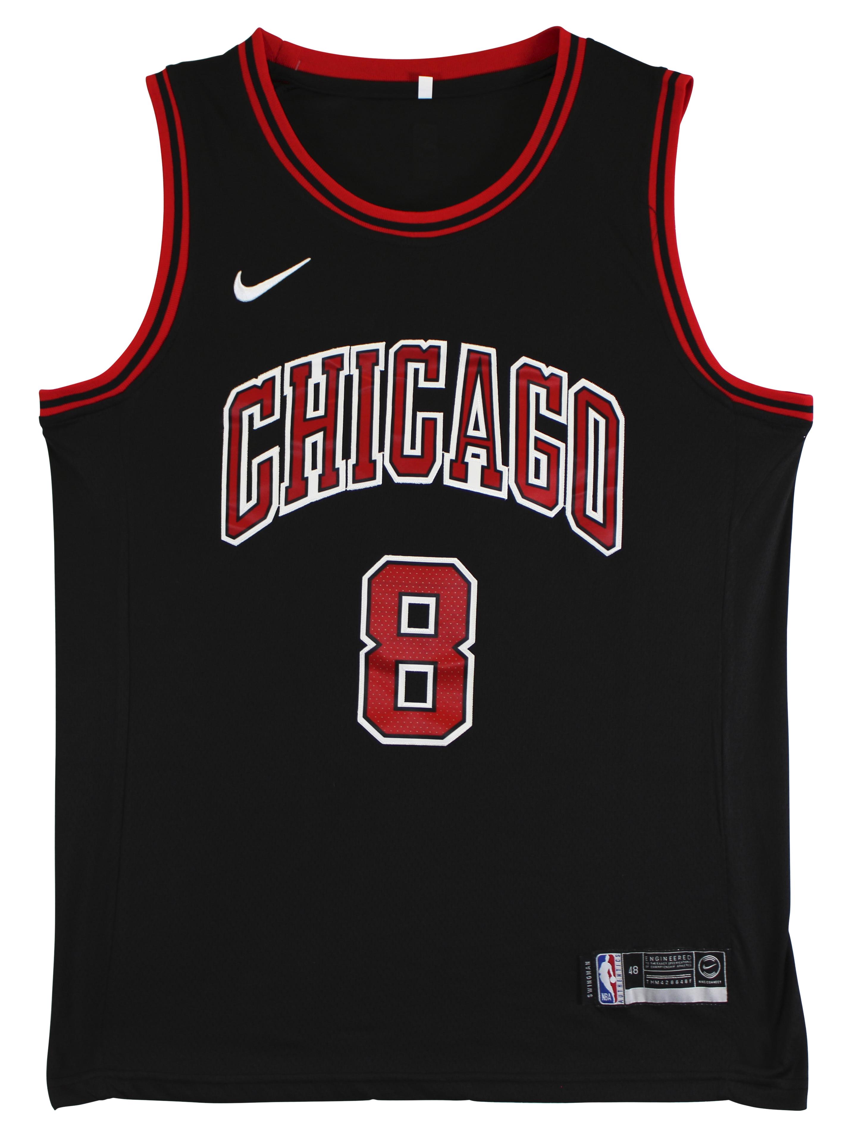 Nike jersey with everything pressed on, size L. Hand-signed by Zach LaVine (Chicago Bulls).