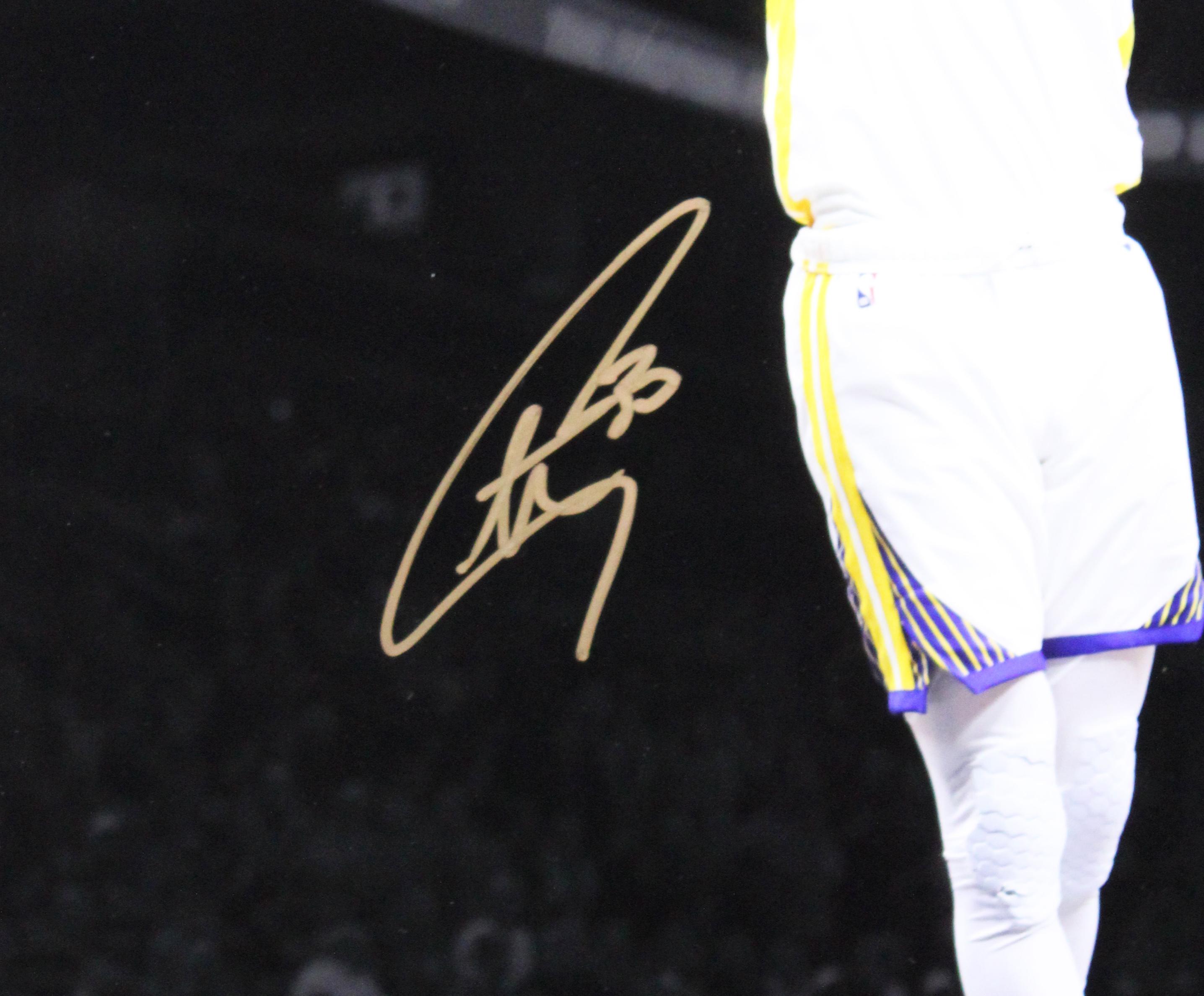 Custom frame measures 23.5” x 28” in size and features a photo that has been hand-signed by Stephen Curry (Golden State Warriors).