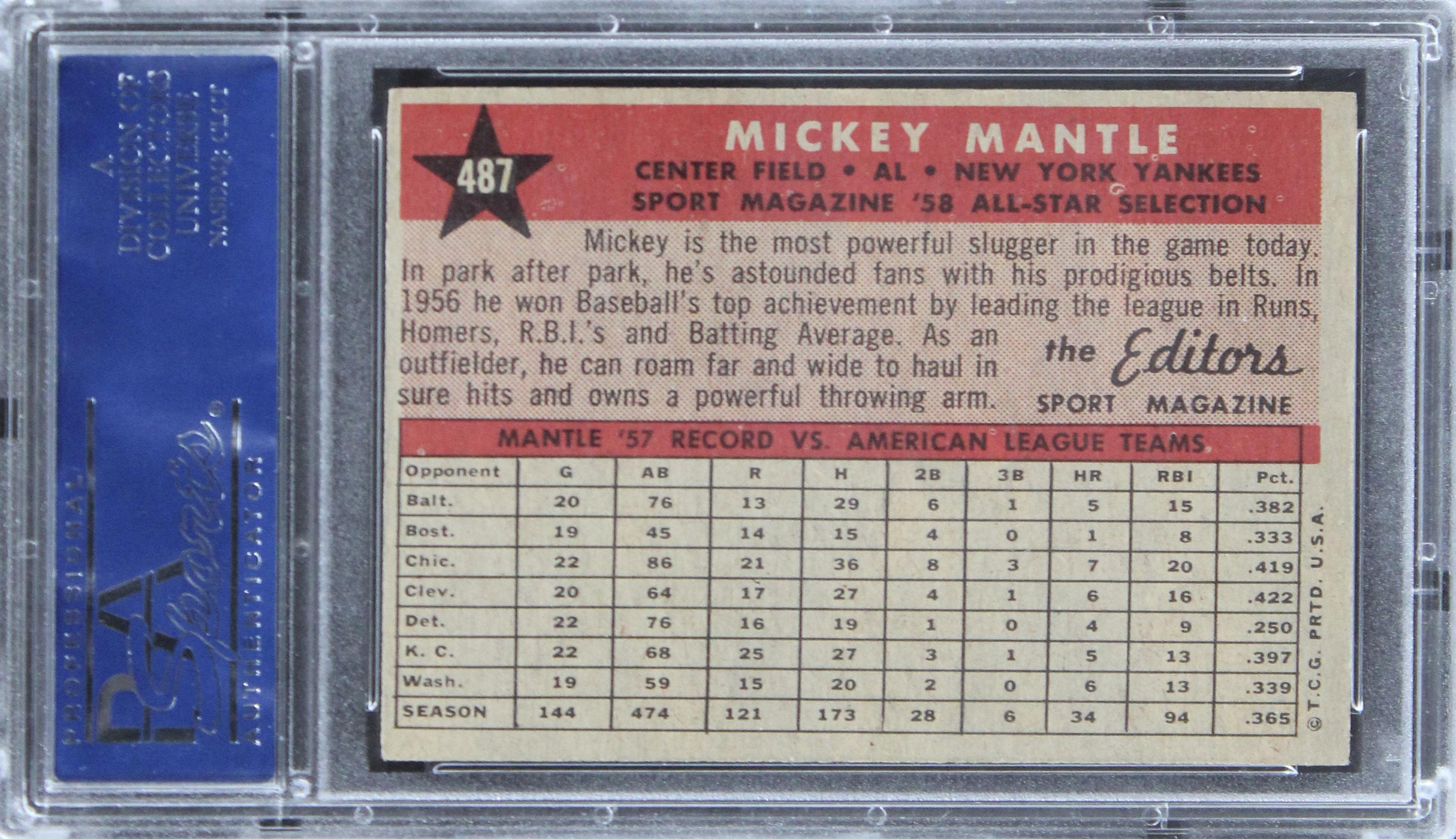 Mickey Mantle Signed 1958 Topps #487 (PSA)