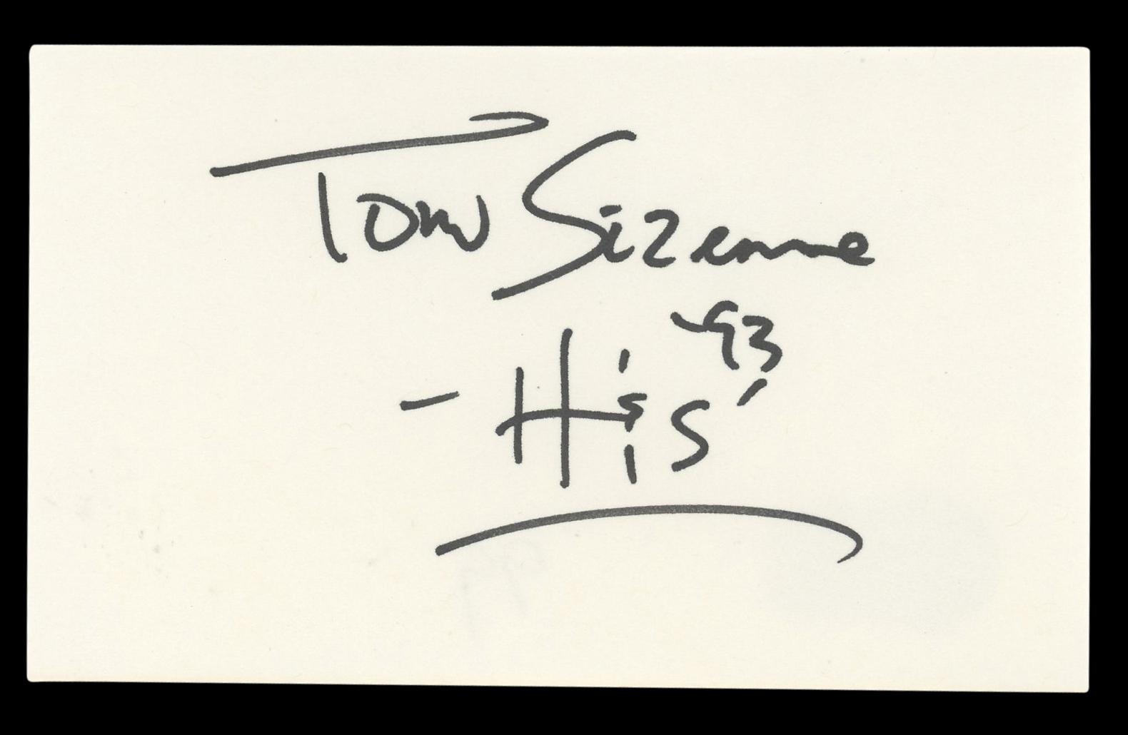 Index Card measures 3” x 5” in size and has been hand-signed by Tom Sizemore.