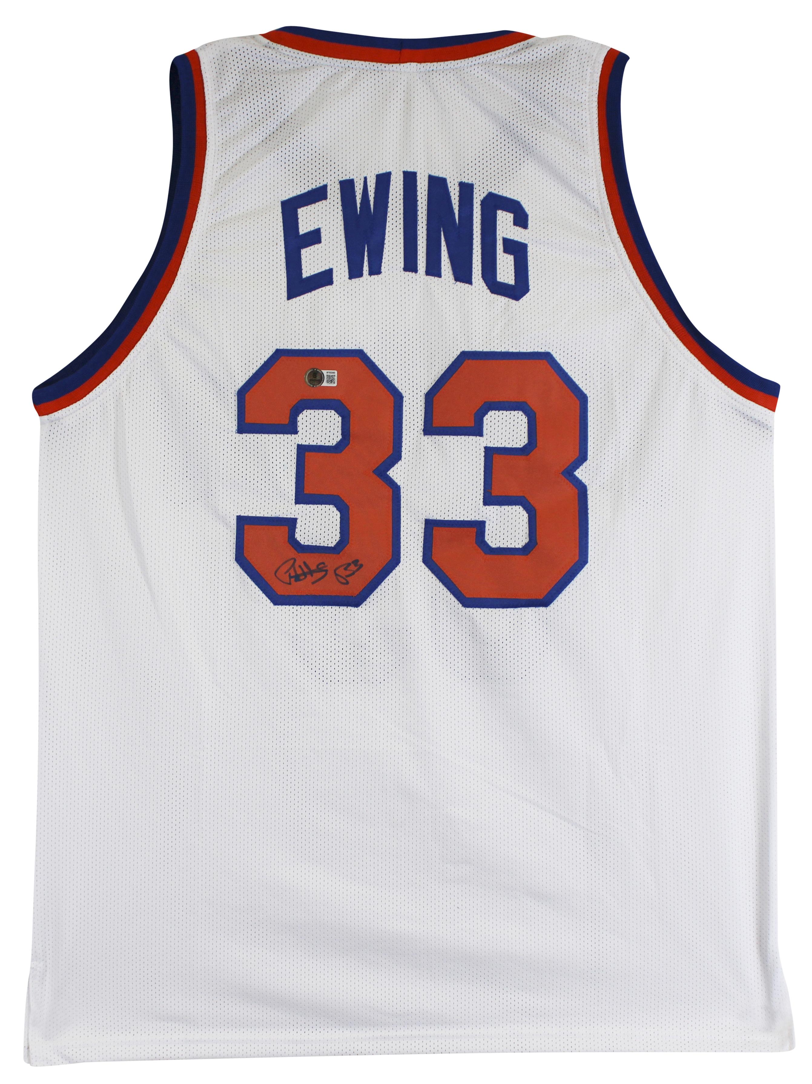 Custom jersey with everything sewn on, size XL. Hand-signed by Patrick Ewing (HOF).