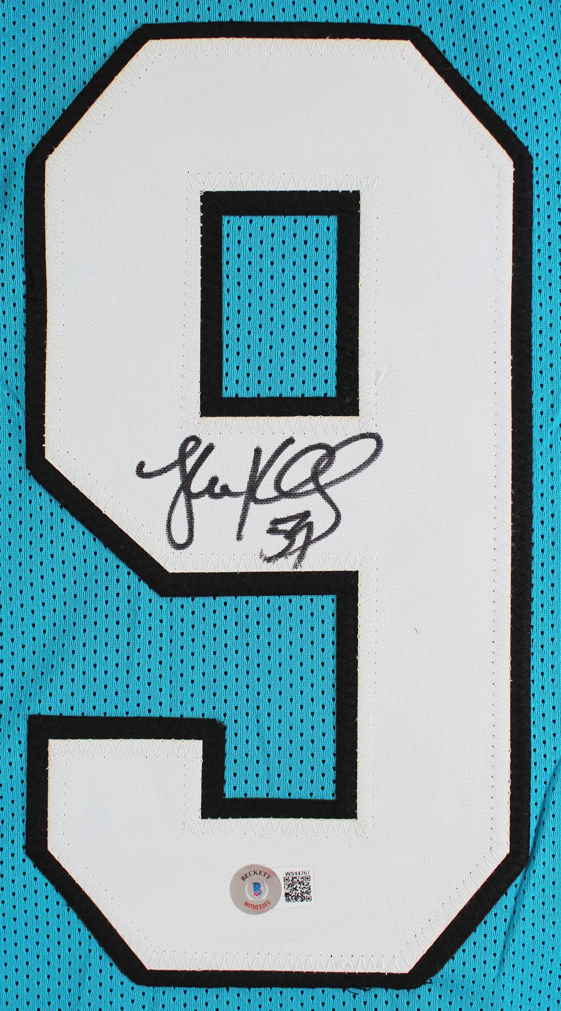 Custom style jersey. Everything is sewn on, size XL. Hand-signed by Luke Kuechly.