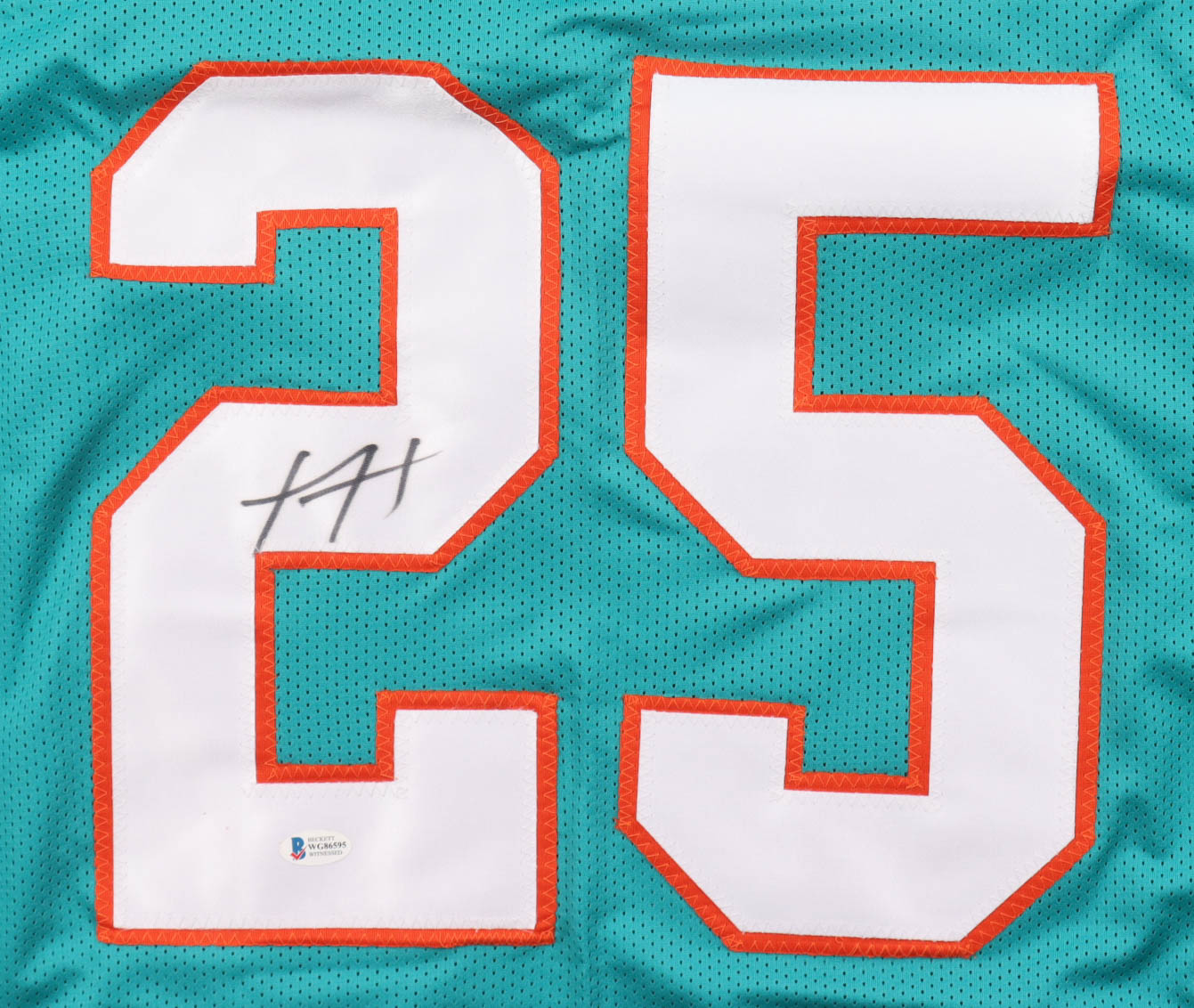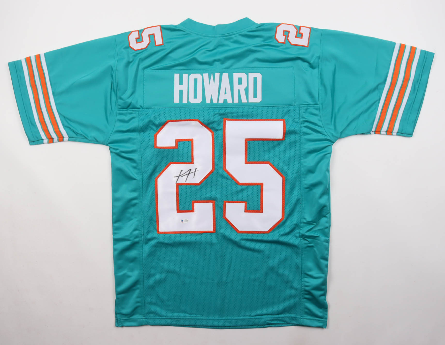 Custom jersey with everything sewn on, size XL. Hand-signed by Xavien Howard (Miami Dolphins).