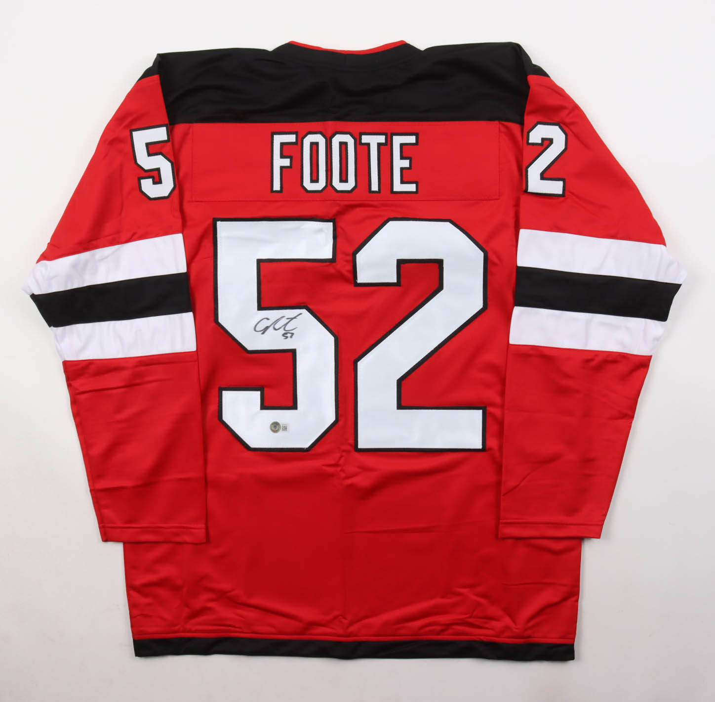 Custom jersey with everything sewn on, size XL. Hand-signed by Cal Foote.