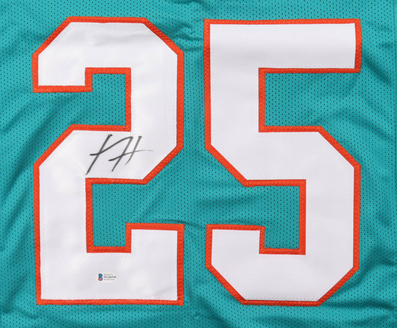 Custom jersey with everything sewn on, size XL. Hand-signed by Xavien Howard (Miami Dolphins).