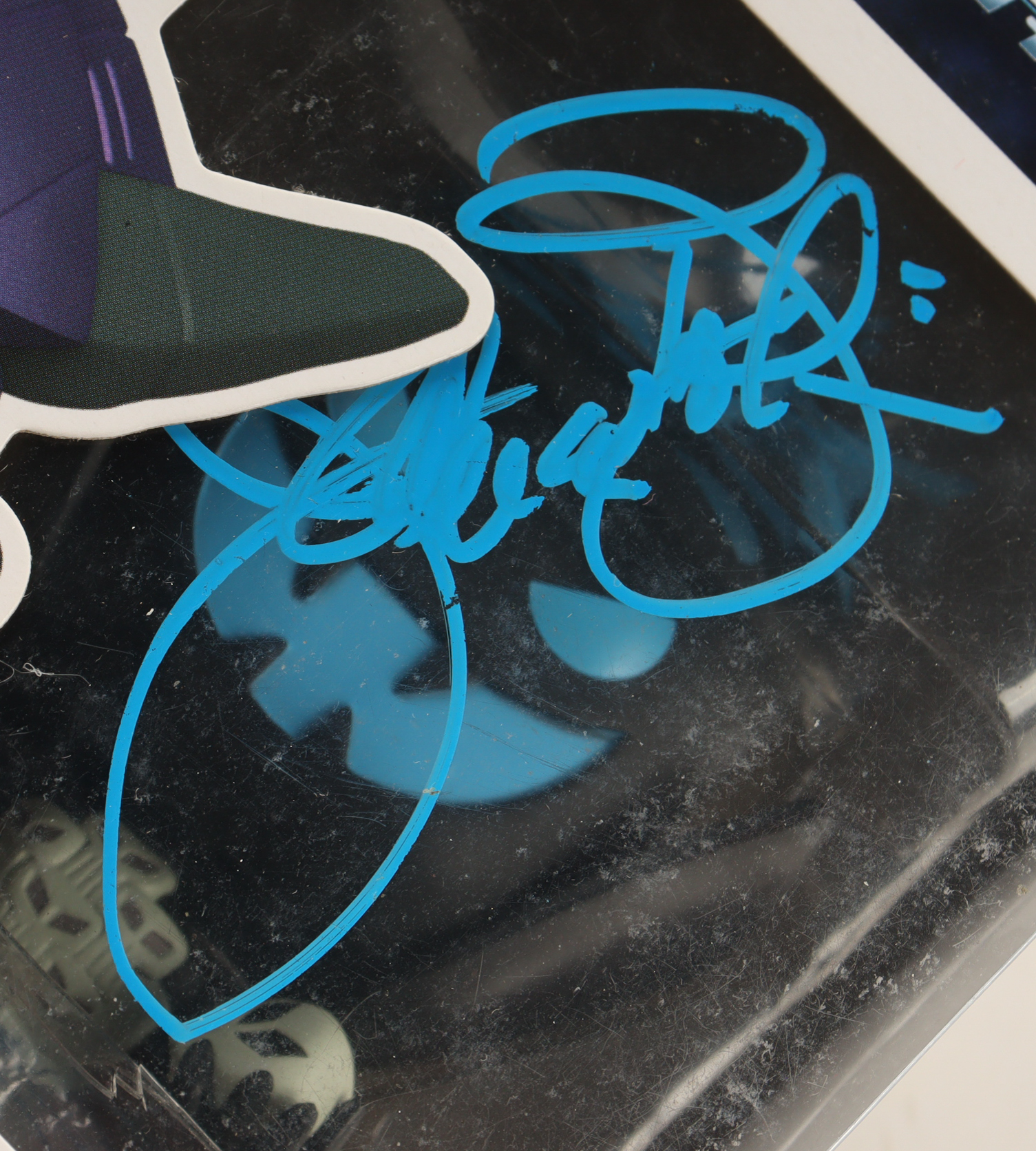 Vinyl figure measures approximately 4" tall and has been hand-signed on the packaging by James Brolin. Please note, item has been window swapped and the packaging is damaged, see photos for more details.