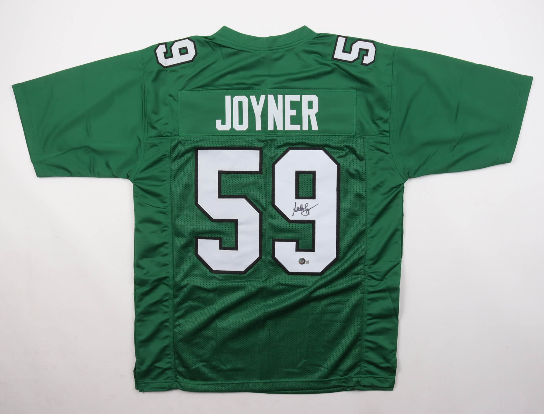 Custom jersey with everything sewn on, size XL. Hand-signed by Seth Joyner (Philadelphia Eagles).