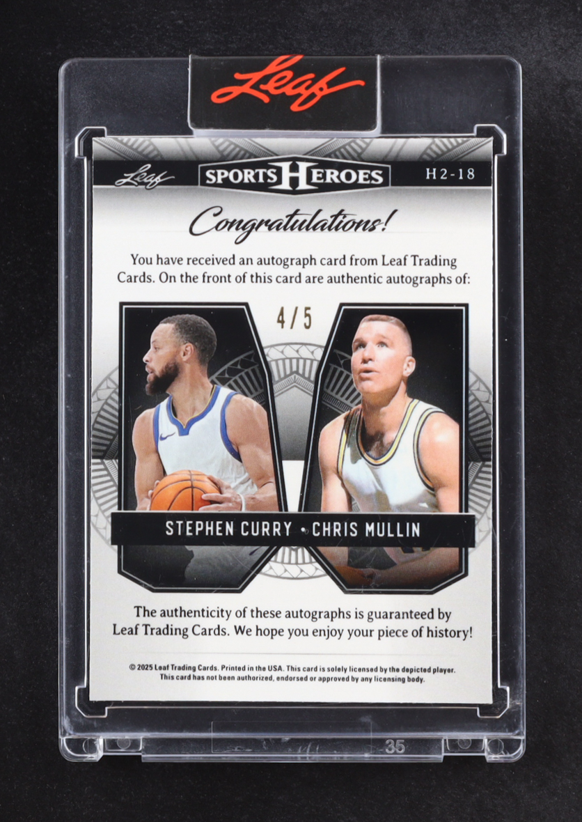 Stephen Curry / Chris Mullin 2025 Leaf Sports Heroes Dual Magenta Autographs #H2-18 #4/5