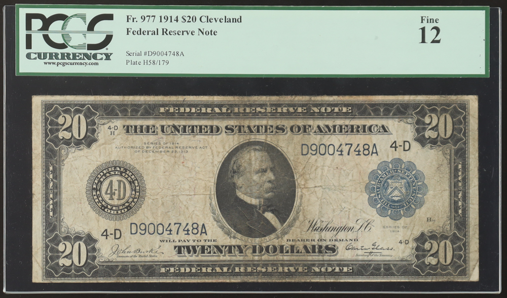 1914 $20 Twenty Dollars Blue Seal Federal Reserve Bank Note - Cleveland (PCGS 12)