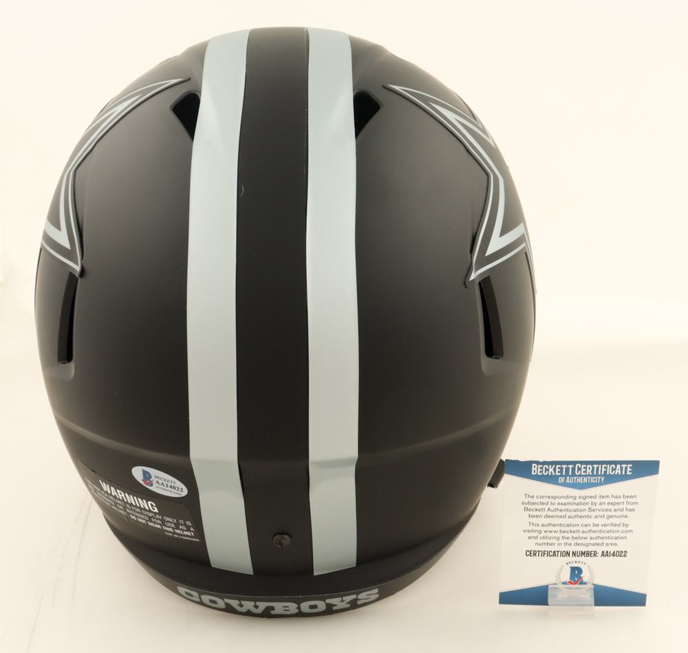 Riddell Dallas Cowboys full-size Eclipse Alternate Speed replica helmet. Hand-signed and inscribed by Jaylon Smith.