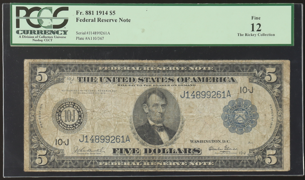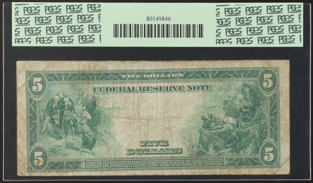 1914 $5 Five Dollars Blue Seal Federal Reserve Bank Note (PCGS 12)
