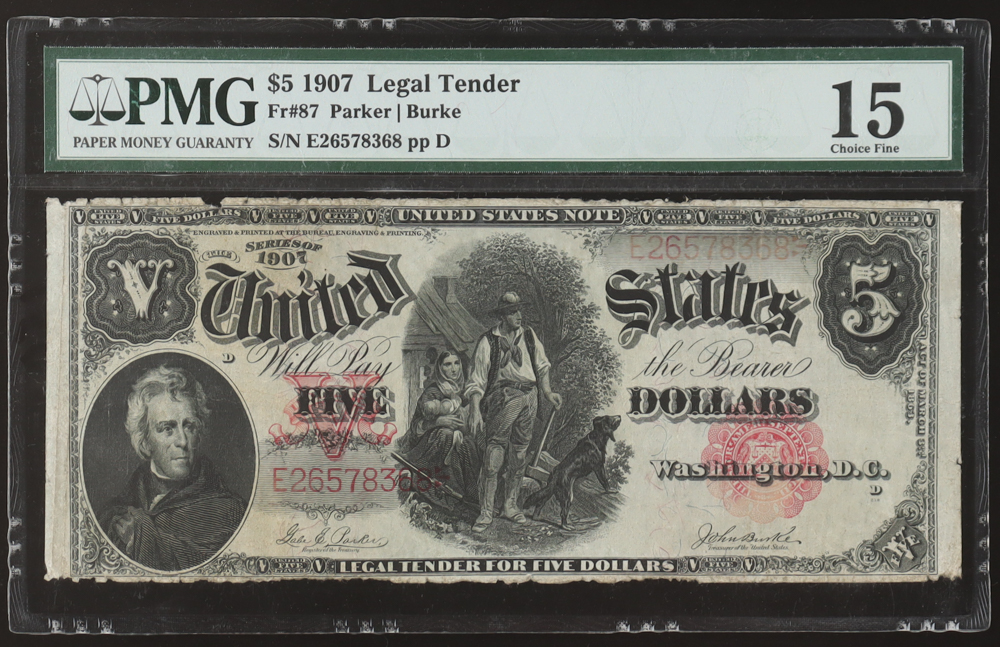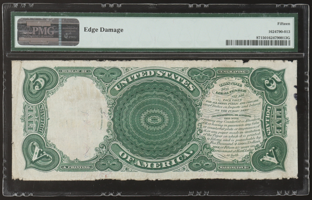 1907 United States Legal Tender $5 Five Note (PMG 15)