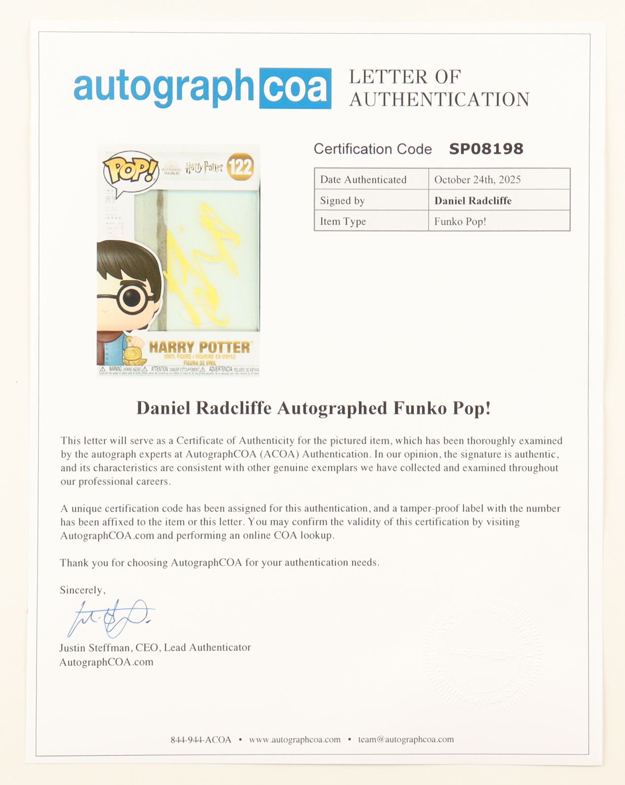 Daniel Radcliffe Signed "Harry Potter" #122 Wizarding World Funko Pop! Vinyl Figure (ACOA)