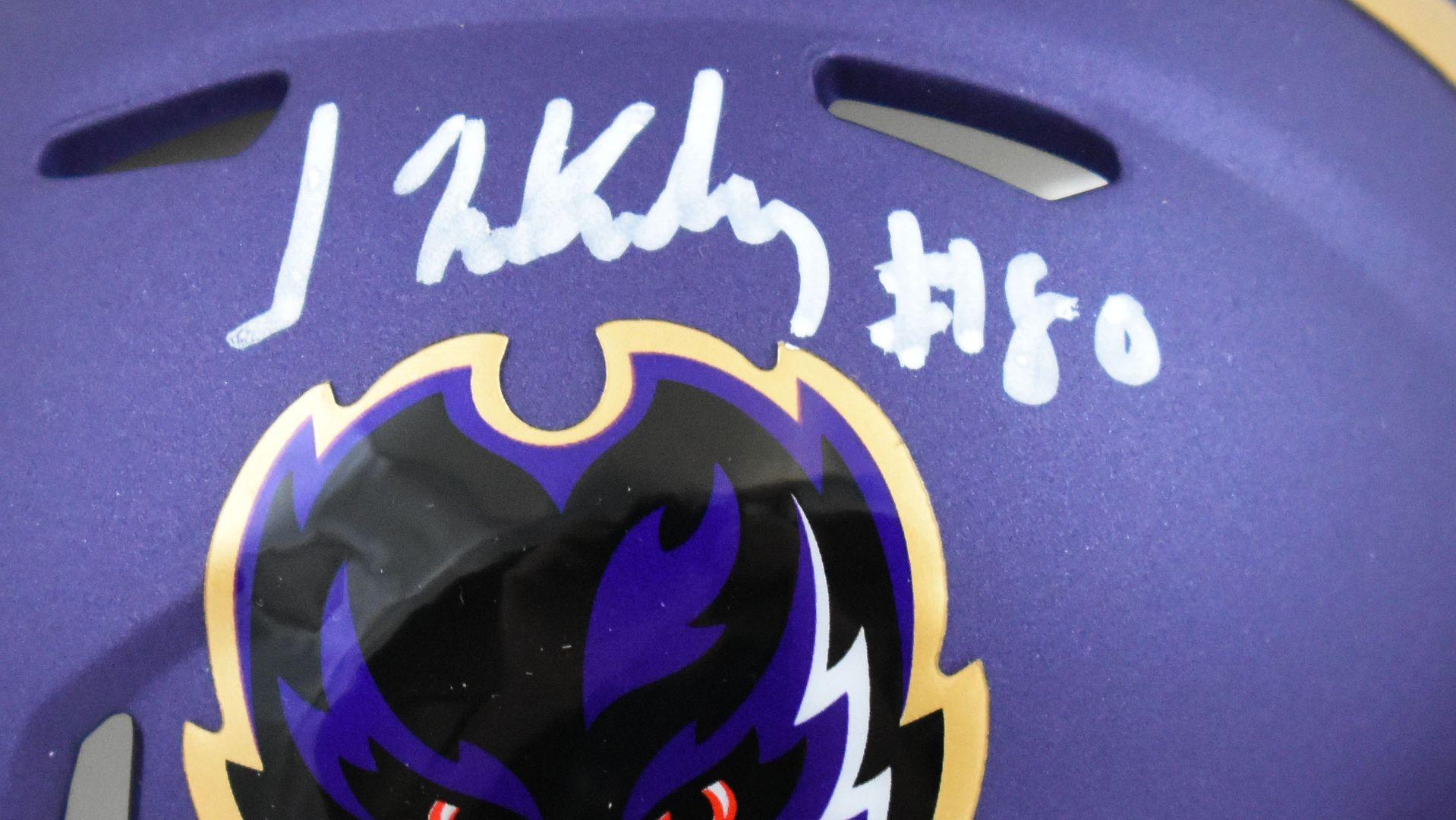 Riddell Baltimore Ravens alternate speed mini helmet has been hand-signed by Isaiah Likely.